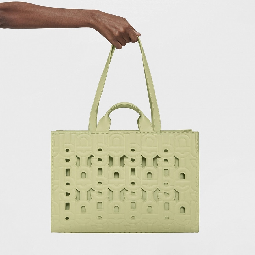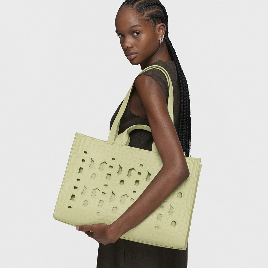 Велика сумка TOUS Manifesto Cut Amaya зі штучної шкіри зеленого кольору. Внутрішня кишеня на блискавці. Фіксовані ручки та плечові ремені. У комплект входить косметичка для дрібниць на застібці-блискавці всередині. Розміри (висота х ширина х глибина): 28 х 41 х 17 см.