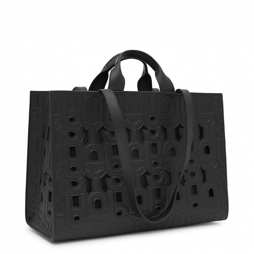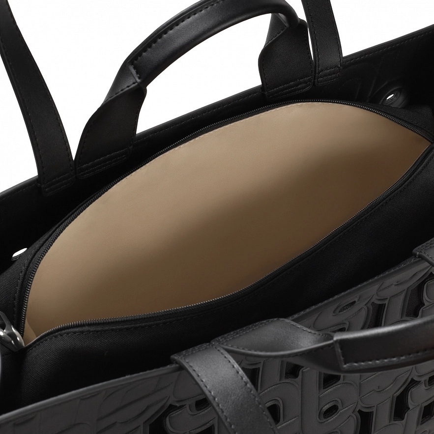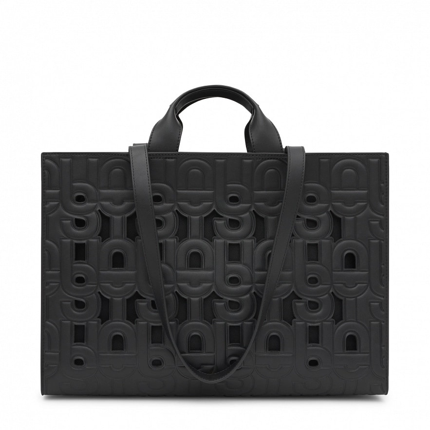 Велика сумка TOUS Manifesto Cut Amaya з чорної штучної шкіри. Внутрішня кишеня на блискавці. Фіксовані ручки та плечові ремені. У комплект входить косметичка на блискавці всередині. Розміри (висота х ширина х глибина): 28 х 41 х 17 см.