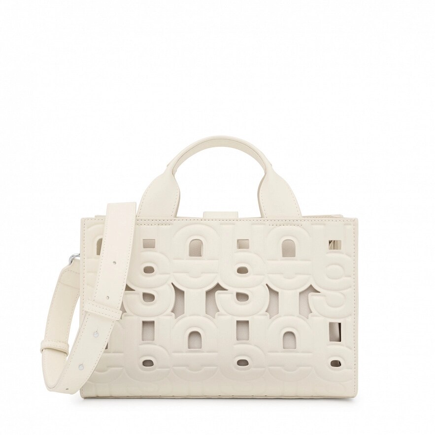 Сумка TOUS Manifesto Cut Amaya зі штучної шкіри бежевого кольору. Застібка на магнітній кнопці. Фіксовані ручки, регульований і знімний ремінь через плече. У комплект входить косметичка на блискавці всередині. Розміри (висота х ширина х глибина): 18 x 27 x 14 см.