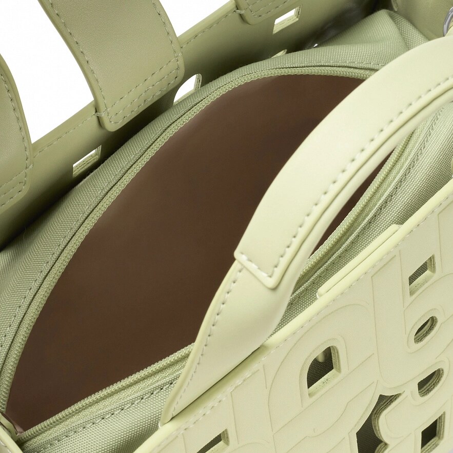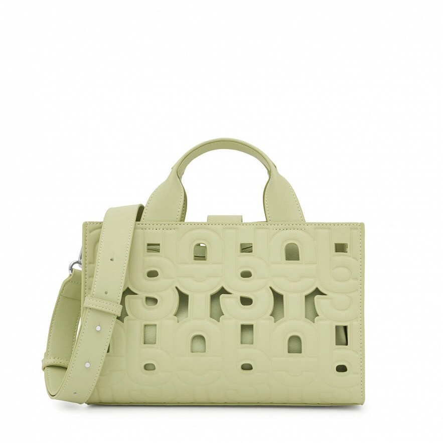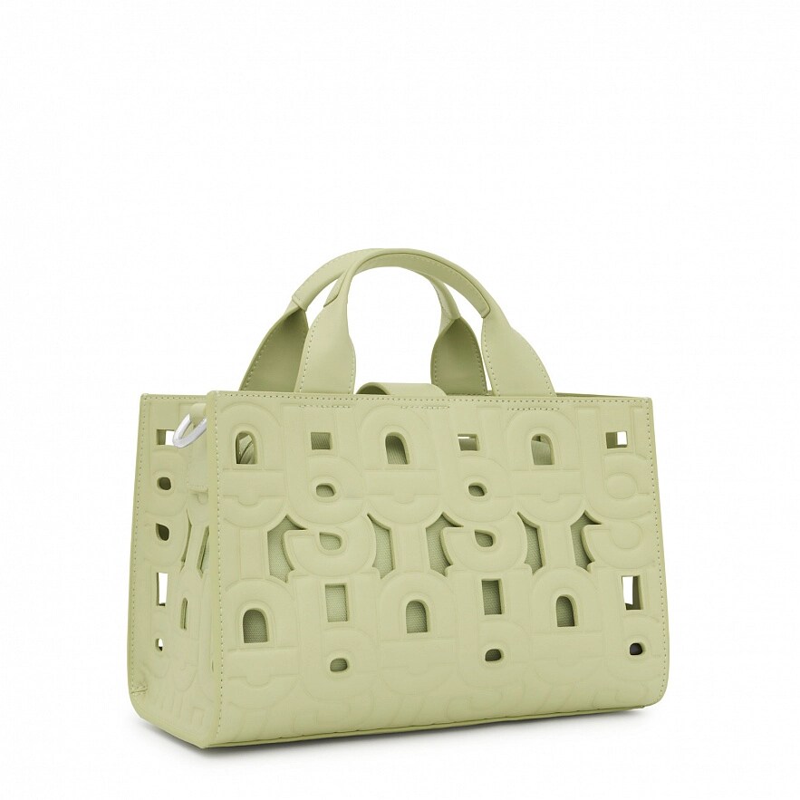 Сумка середнього розміру TOUS Manifesto Cut Amaya зі штучної шкіри зеленого кольору. Застібка на магнітній кнопці. Фіксовані ручки, регульований і знімний ремінь через плече. У комплекті косметичка для дрібниць на блискавці всередині. Розміри (висота х ширина х глибина): 18 x 27 x 14 см.