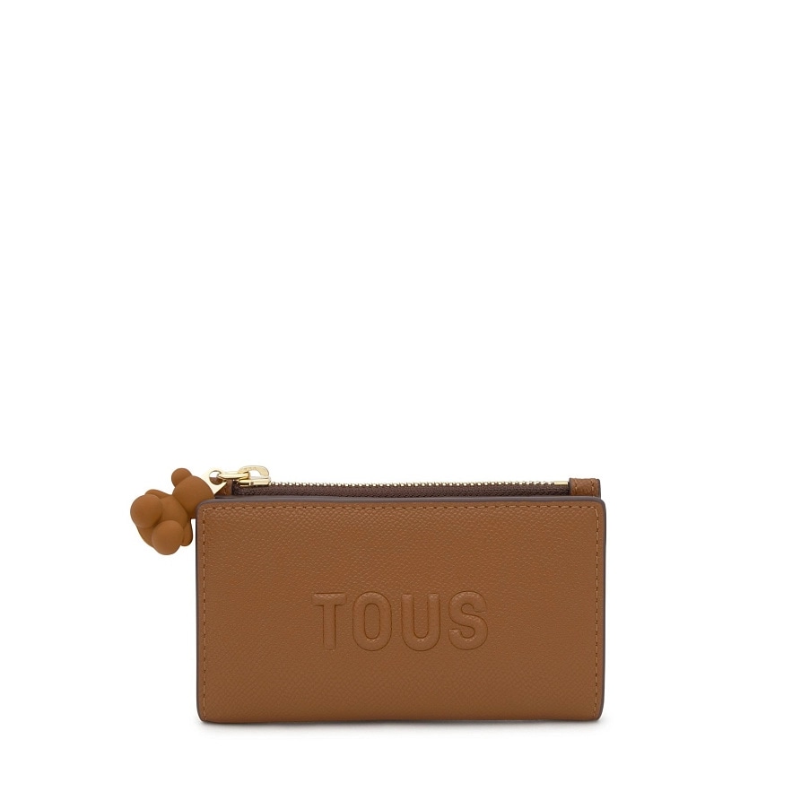 Гаманець TOUS Brenda для карток з поліуретану кольору кемел . Закривається на кнопку. Має відділення для монет на блискавці. Всередині вісім відділень для карток і два відділення для купюр. Розміри (висота х ширина х глибина): 8,5 х 14 х 2 см