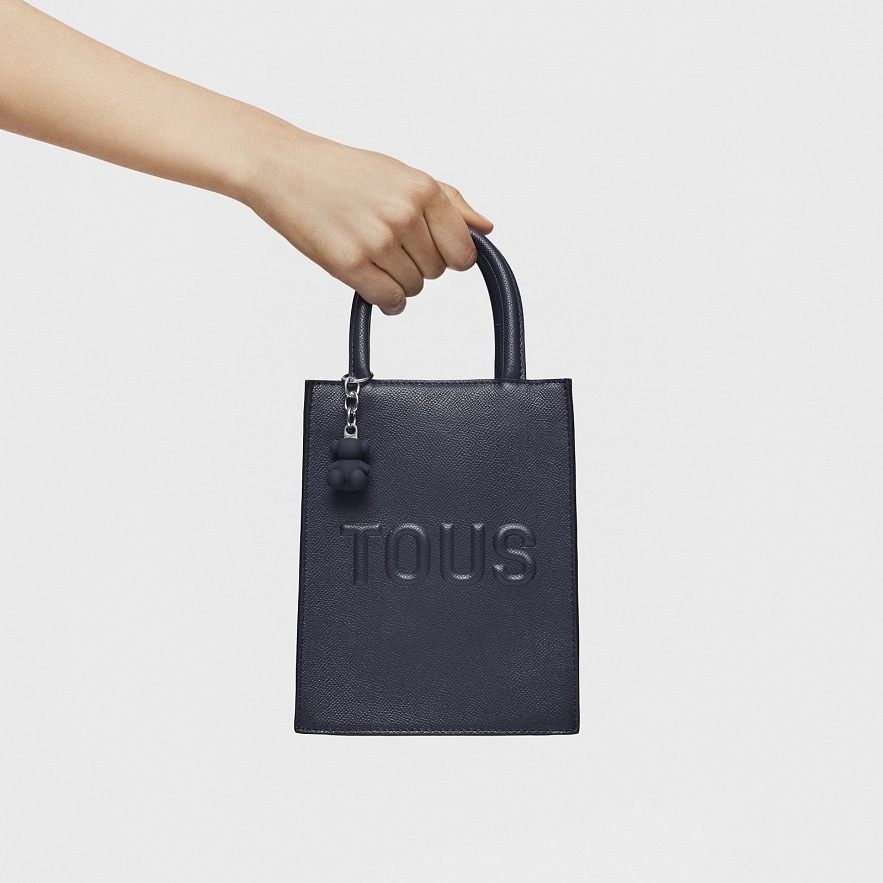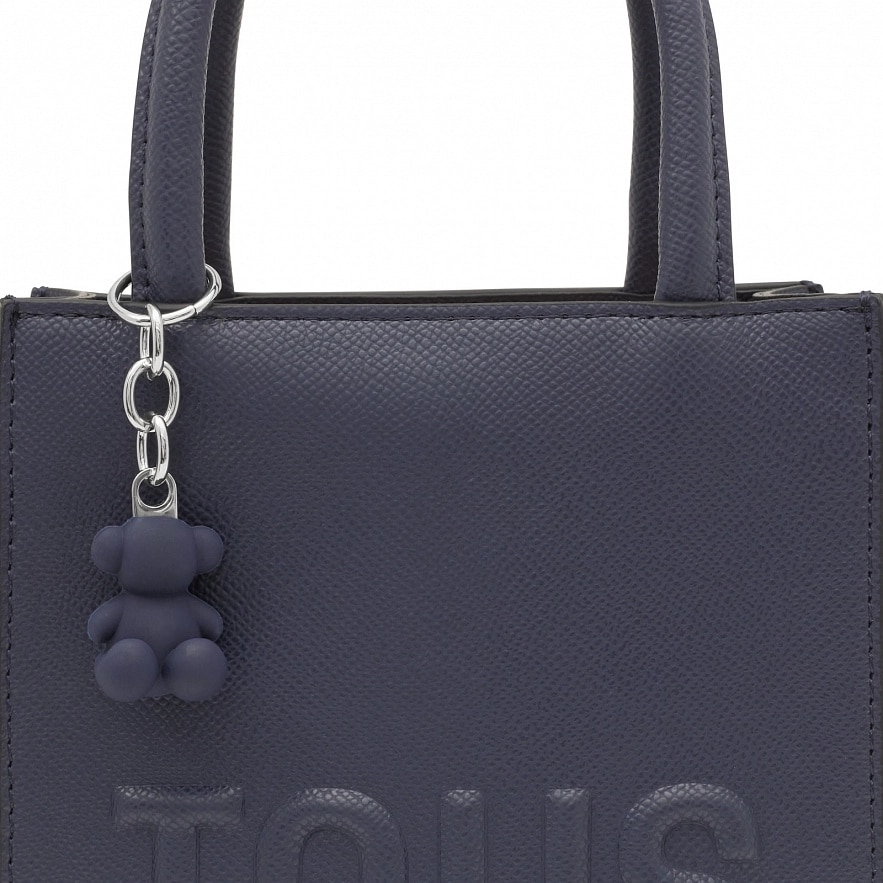 Сумка TOUS Brenda Pop з темно-синього поліуретану. Застібка на магнітній кнопці. Фіксовані ручки та регульований і знімний ремінь через плече. З підвіскою у форміі ведмедика. Розміри (висота х ширина х глибина): 20 x 16 x 7 см.