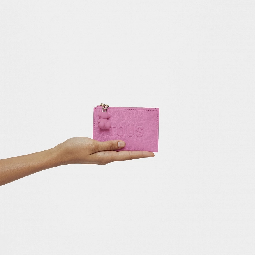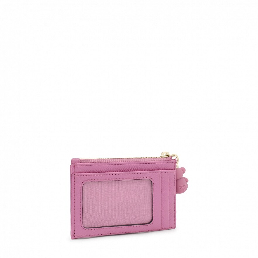 Гаманець TOUS Brenda з поліуретану рожевого кольору. Спеціальне відділення для монет на блискавці. На тильній стороні має три слоти для карток, один з яких прозорий. Розміри (висота х ширина х глибина): 8,5 х 11,5 х 1 см.