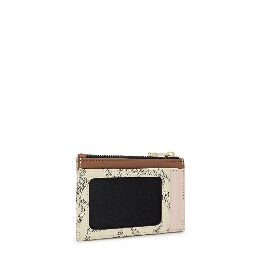 Гаманець TOUS Kaos Icon бежевого кольору зі штучного матеріалу та деталями зі штучної шкіри. Спеціальне відділення для монет на блискавці. Має три слоти для карток на тильній стороні, один з яких прозорий. Розміри (висота х ширина х глибина): 8 х 12 х 1,5 см.
