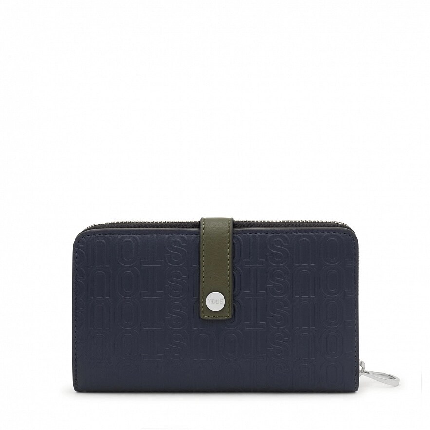 Гаманець TOUS Urbana Logo New з темно-синьої шкіри з сертифікатом LWG . Має два відділення. Одне на застібці-блискавці, з тринадцятьма слотами для карток і трьома відділеннями для купюр. Інше, на блискавці, має три відділення для монет. Розміри (висота х ширина х глибина): 11,5 x 19 x 5 см.