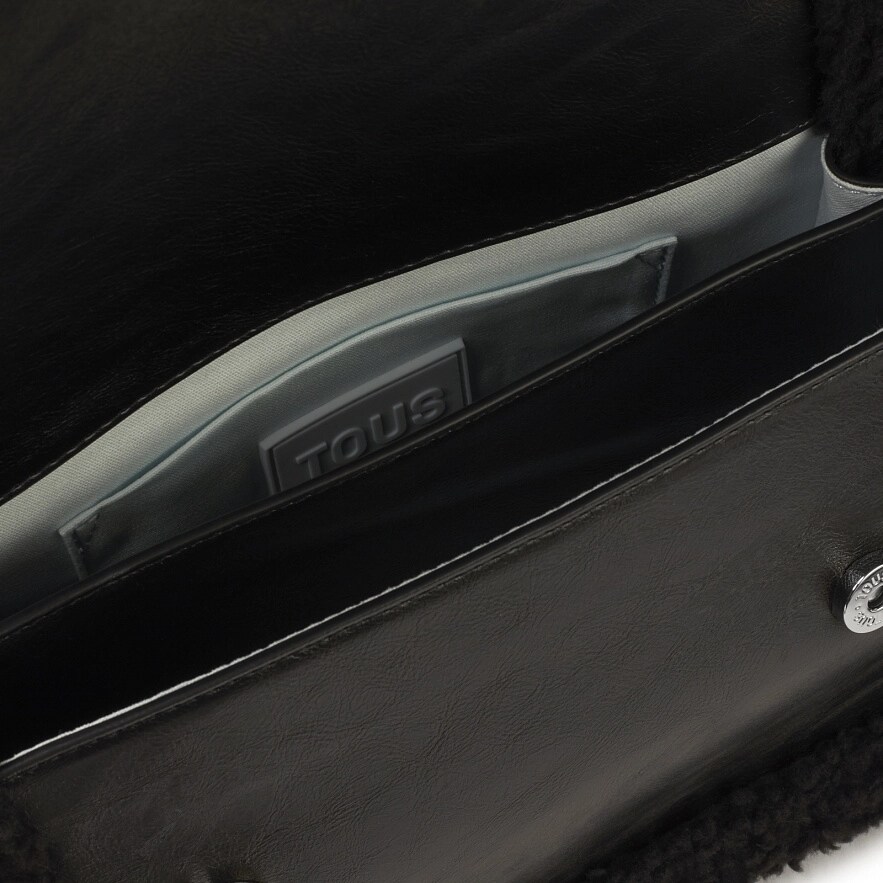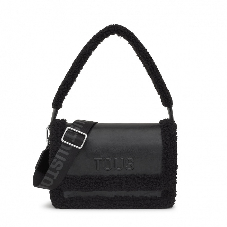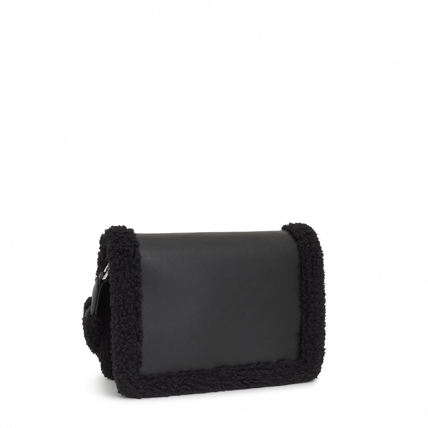 Сумка TOUS Audree Warm зі штучної шкіри чорного кольору, зі штучним хутром. Клапан на магнітній кнопці для застібки. Три внутрішні кишені. Фіксований плечовий ремінь, регульований і знімний ремінь. Розміри (висота х ширина х глибина): 18 x 25 x 11 см.