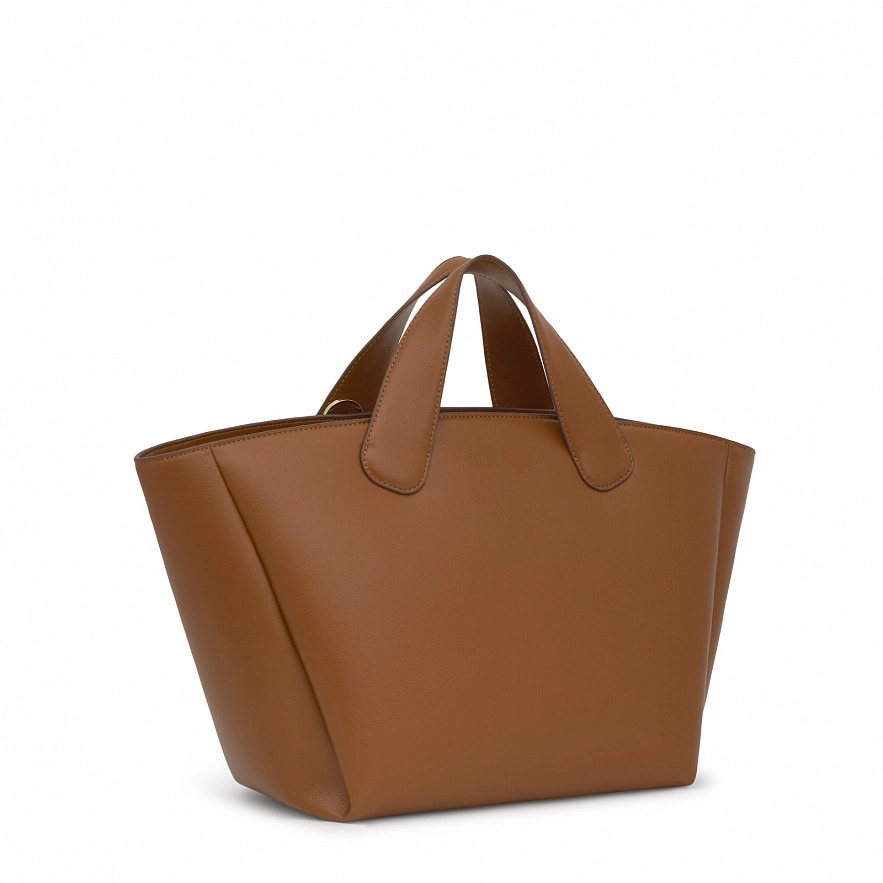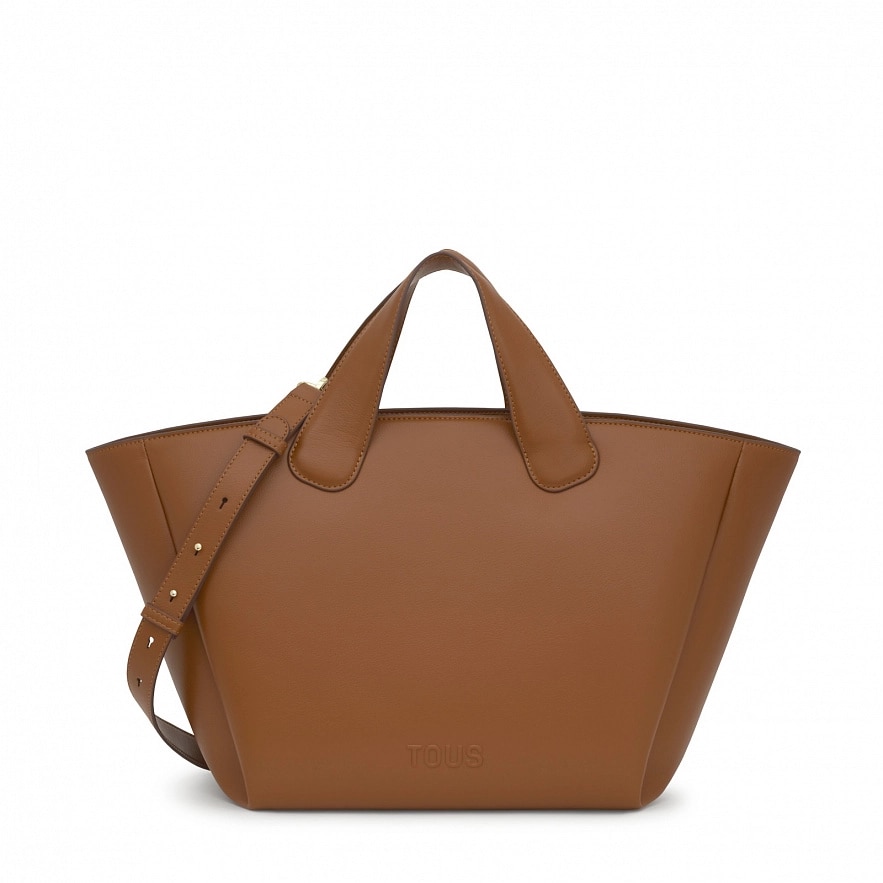 Сумка TOUS Bloom з поліуретану, велика, кольору кемел. Застібка на блискавці. Фіксовані ручки та фіксований плечовий ремінь. Відкрита внутрішня кишеня. Розміри (висота х ширина х глибина): 27 x 51 x 19 см.