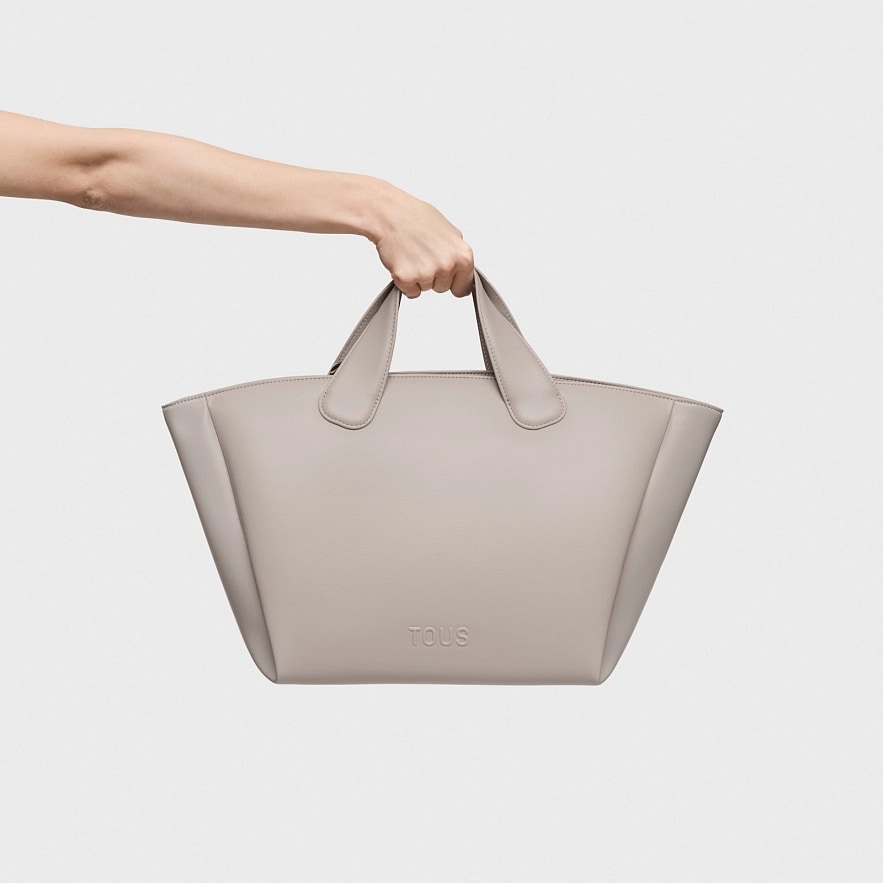 Сумка TOUS Bloom з поліуретану, велика, сірого кольору. Застібка на блискавці. Фіксовані ручки та фіксований плечовий ремінь. Відкрита внутрішня кишеня. Розміри (висота х ширина х глибина): 27 x 51 x 19 см.