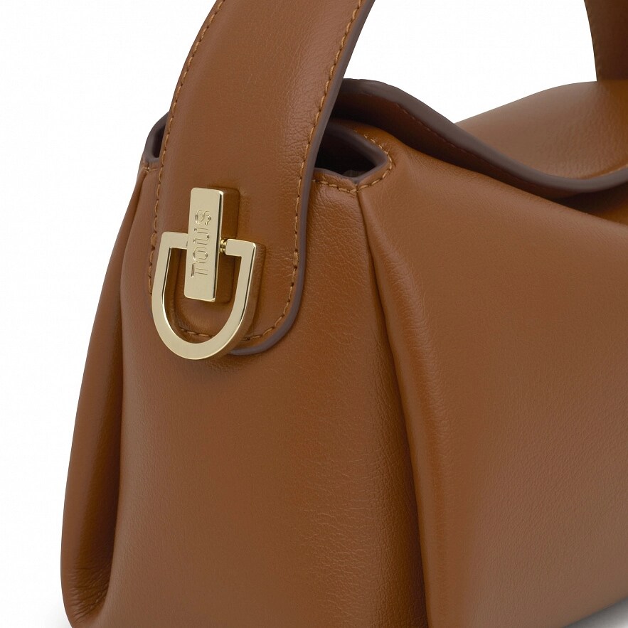 Сумка TOUS Bloom з поліуретану, невелика, пісочного кольору. Магнітна застібка. Фіксована ручка та регульований, знімний ремінь через плече. Відкрита внутрішня кишеня. Розміри (висота х ширина х глибина): 12 х 25 х 13 см.