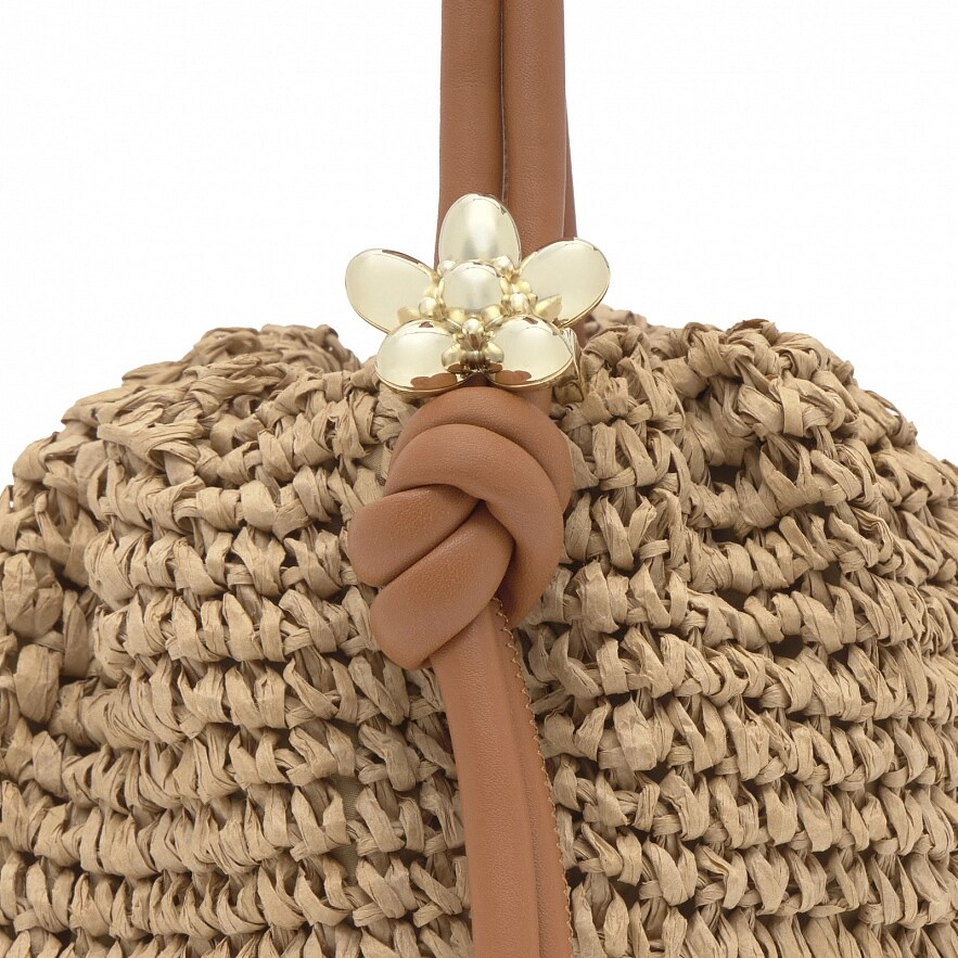 Сумка TOUS Daisy з рафії, оздоблена деталями з поліуретану, кольору camel. Магнітна застібка. Регульована ручка та регульований і знімний ремінь через плече. Деталь у формі квітки. Розміри (висота х ширина х глибина): 18 х 28 х 17 см.
