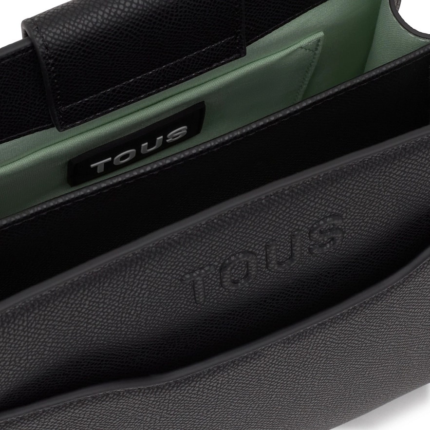 Сумка TOUS Audree Saffiano з поліуретану чорного кольору. Магнітна застібка. Два окремих відділення. Внутрішня кишеня та зовнішня кишеня відкриваються. Два знімних плечових ременя. Розміри (висота х ширина х глибина): 17 х 20 х 11,8 см.