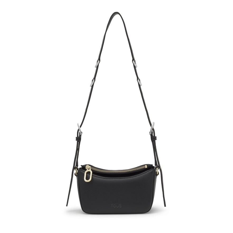 Сумка TOUS City через плече з чорного поліуретану. Магнітна застібка. Регульований і знімний ремінь через плече. Зовнішня кишеня на блискавці. Розміри (висота x ширина x глибина): 12 x 20 x 9 см.