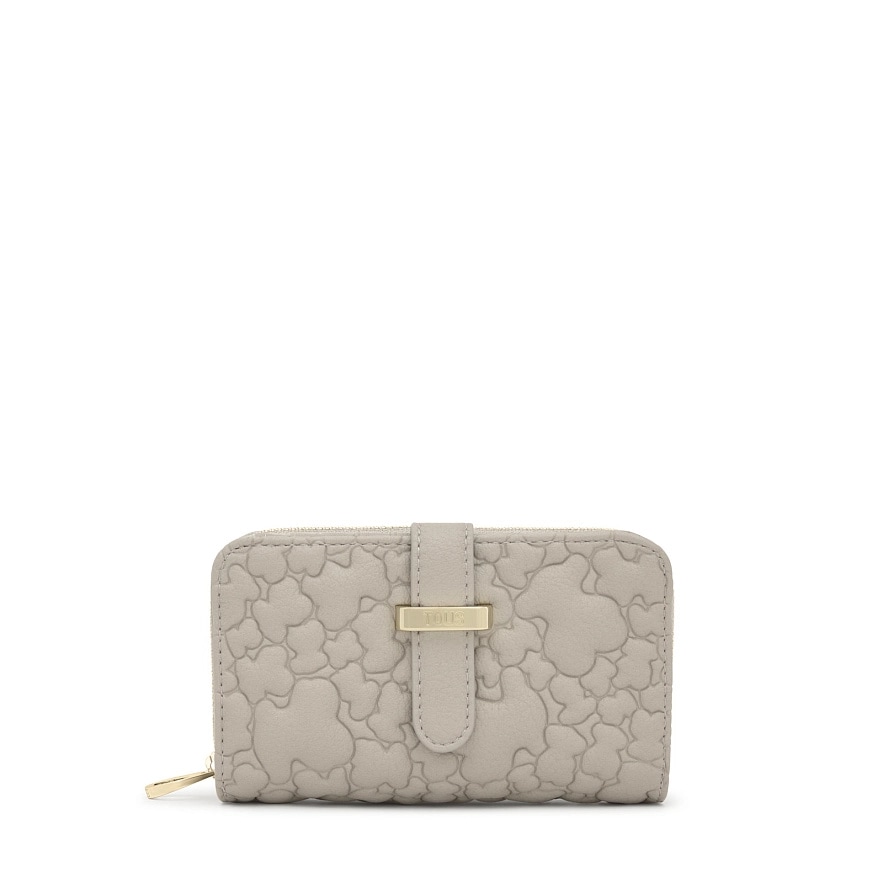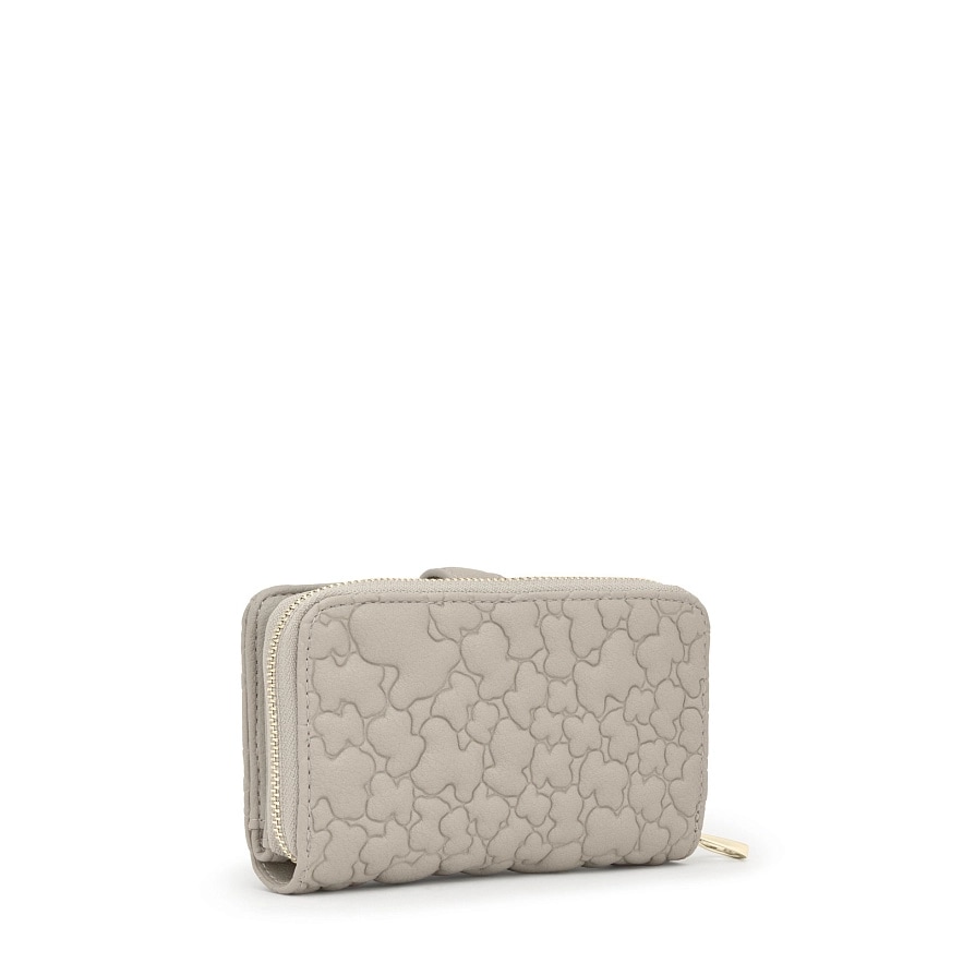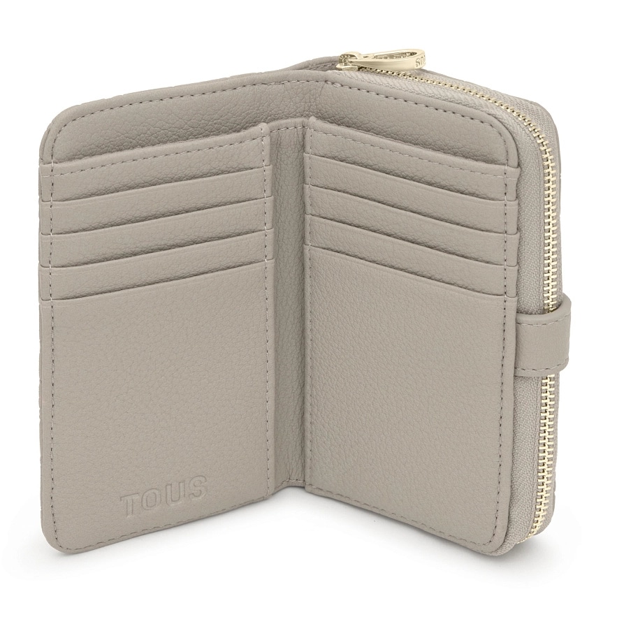 Гаманець TOUS Puffy Bear з поліуретану сіро-коричневого кольору. Застібається на кнопку та блискавку. Всередині, має відділення для купюр, вісім слотів для карток та два відділення для монет. Розміри (висота х ширина х глибина): 9 х 13,5 х 3 см.