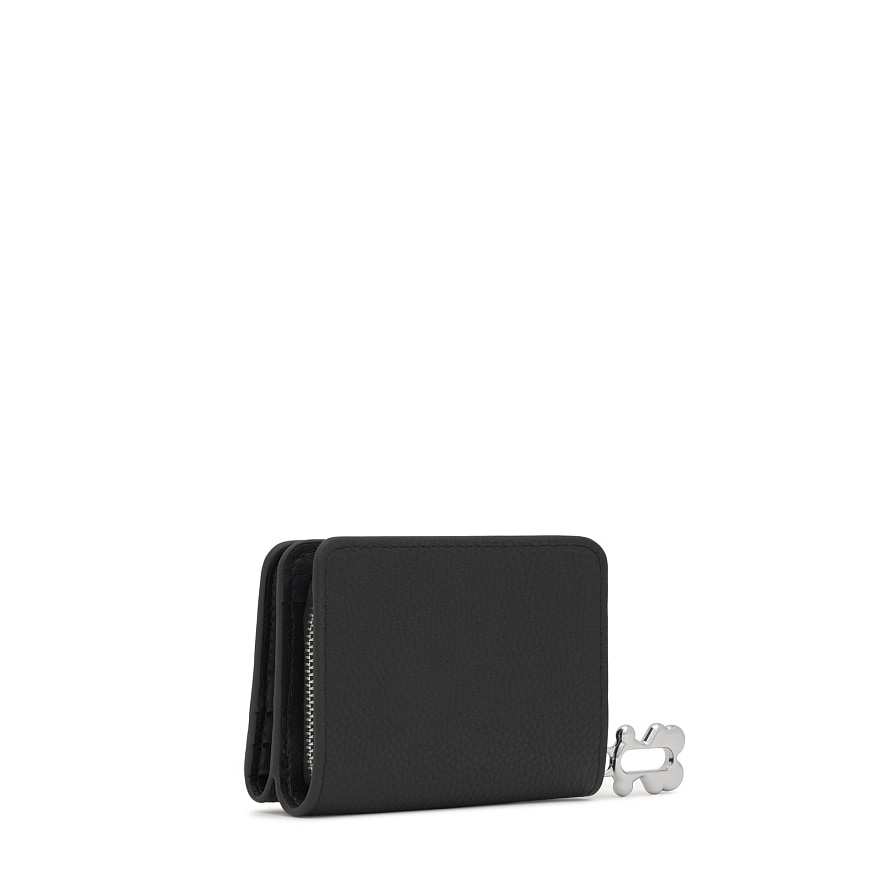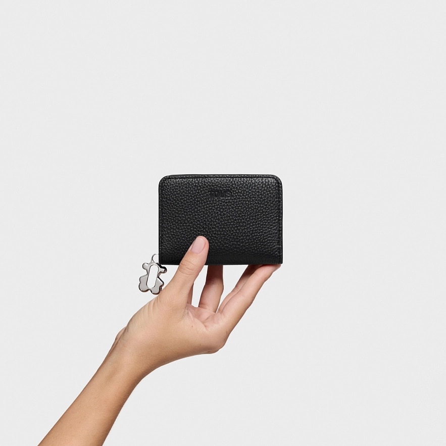 Гаманець TOUS Fold зі шкіри чорного кольору з сертифікатом LWG . Застібка на блискавці та кнопці. Відділення для монет. Одне відділення на кнопці з вісьмома слотами для карток та одне відкрите відділення для купюр. Розміри (висота x ширина x глибина): 8 x 11 x 3 см.