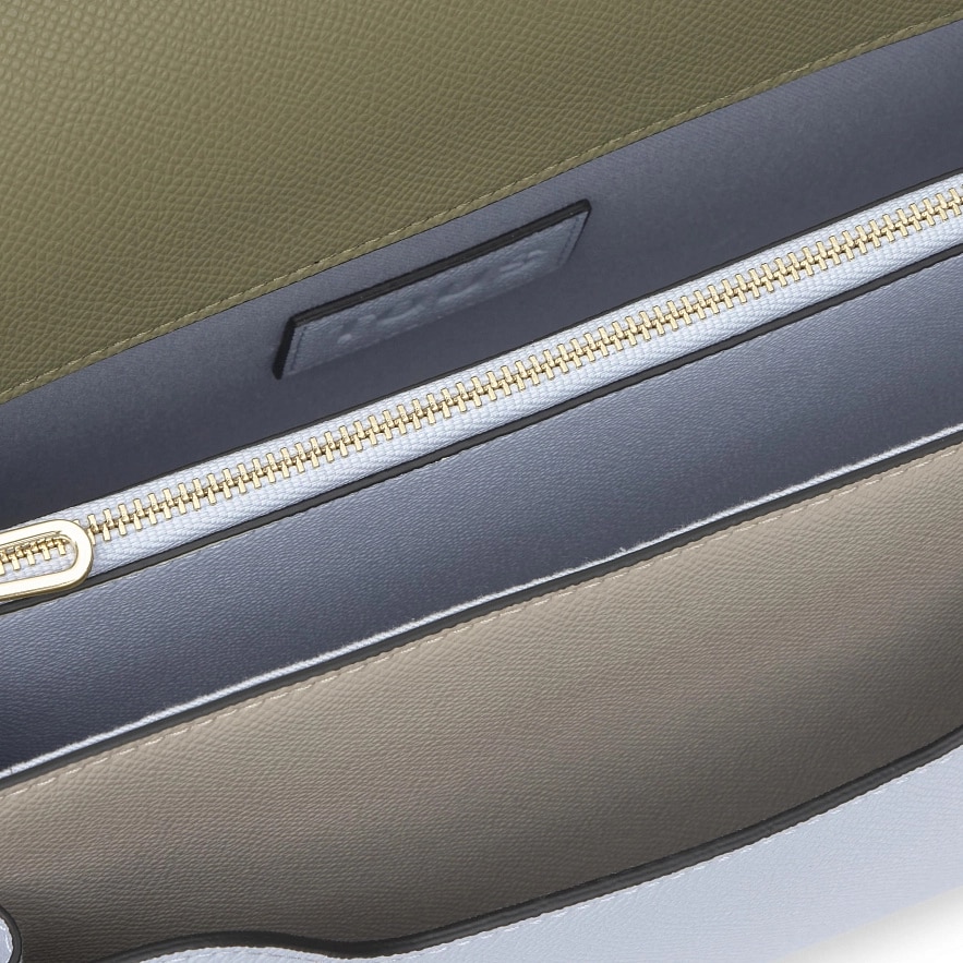 Сумка середнього розміру через плече TOUS Audree Saffiano з поліуретану сіро-коричневого та зеленого кольору. Застібка на клапан з магнітними кнопками. Відкрита зовнішня кишеня. Має два відділення, розділені ще однією кишенею на блискавці. Знімний плечовий ремінь та регульований знімний ремінь через плече. Розміри (висота x ширина x глибина): 17 x 25 x 12 см.