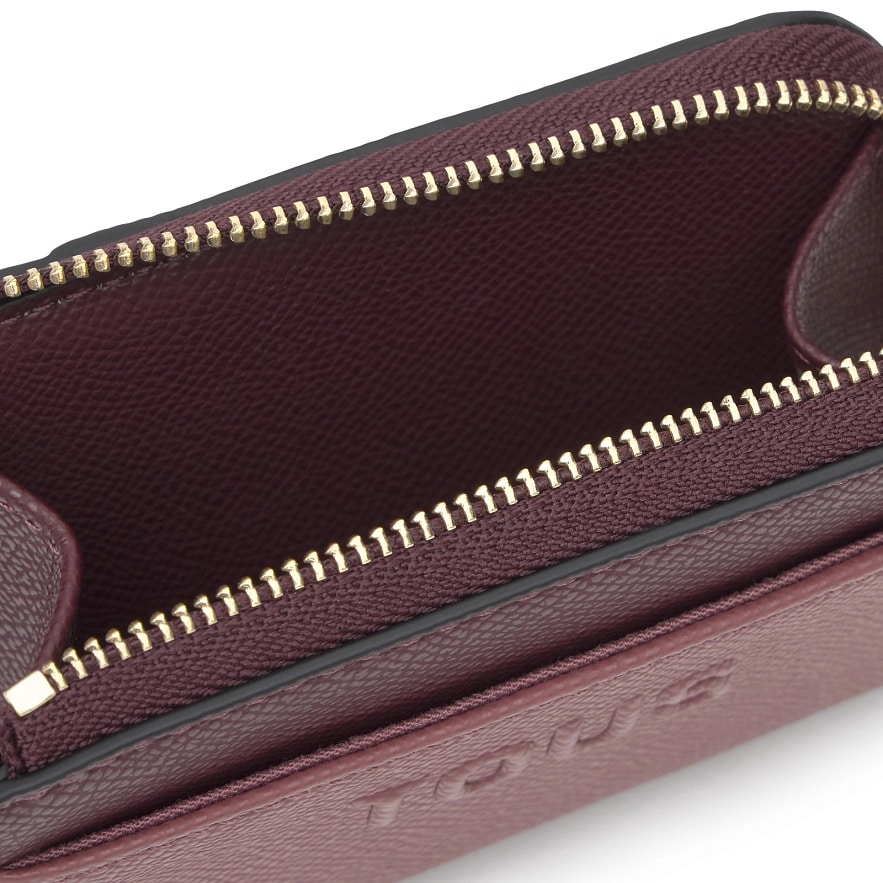 Гаманець TOUS Audree Saffiano з переробленого поліестеру бордового кольору. Застібка-блискавка. Містить три слоти для карток. Розміри (висота x ширина x глибина): 9 x 11,5 x 2,5 см.