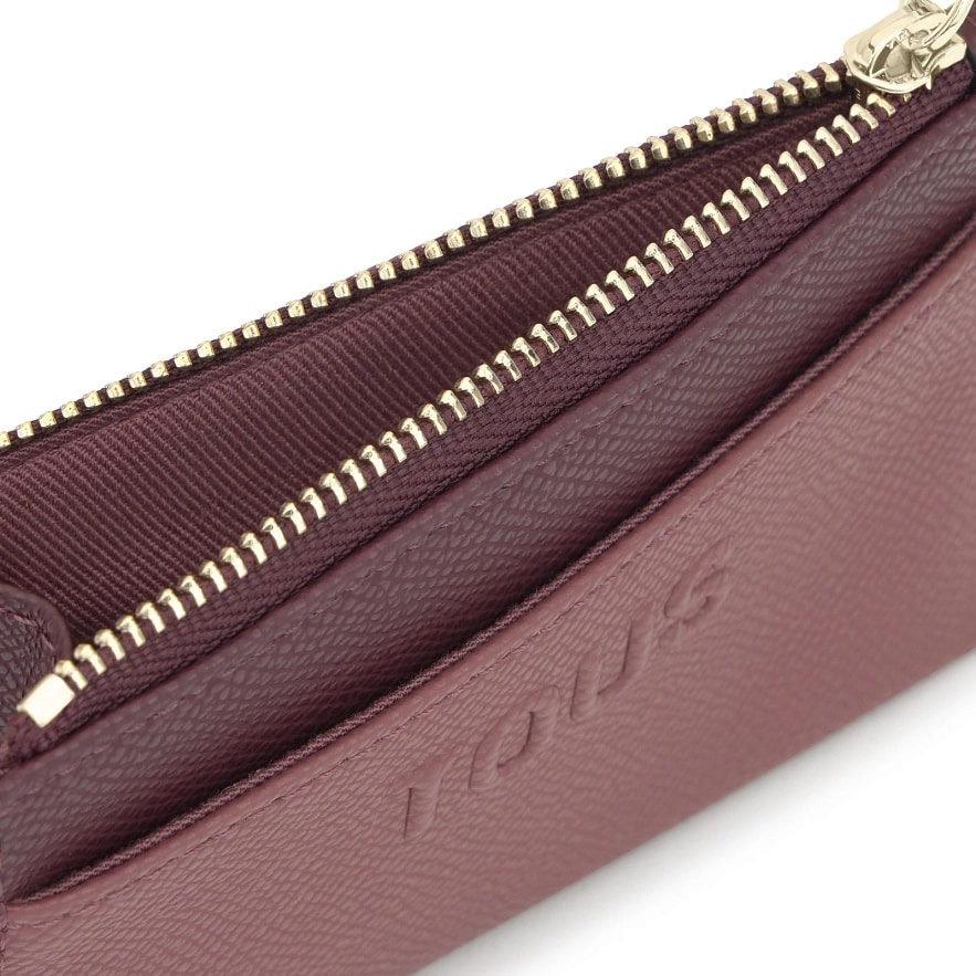 Гаманець TOUS Audree Saffiano з поліуретану бордового кольору. Спеціальне відділення для монет із застібкою-блискавкою. Має три слоти для карток, один з яких прозорий. Розміри (висота x ширина x глибина): 8 x 11,5 x 2 см.