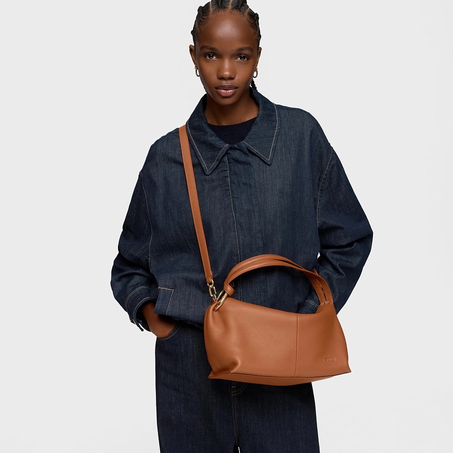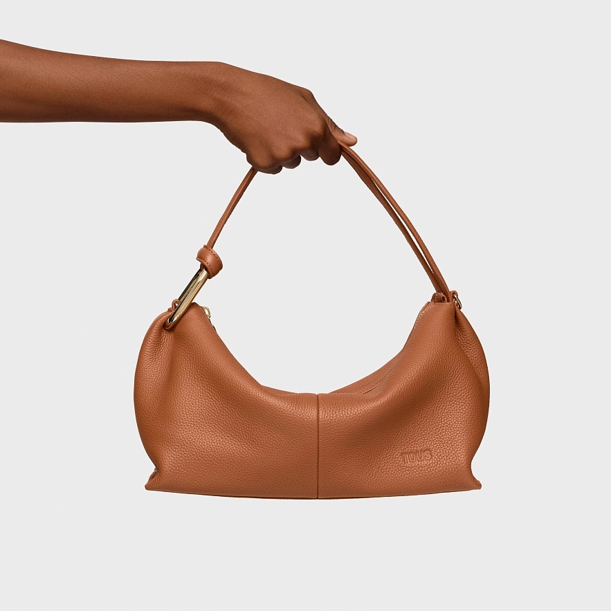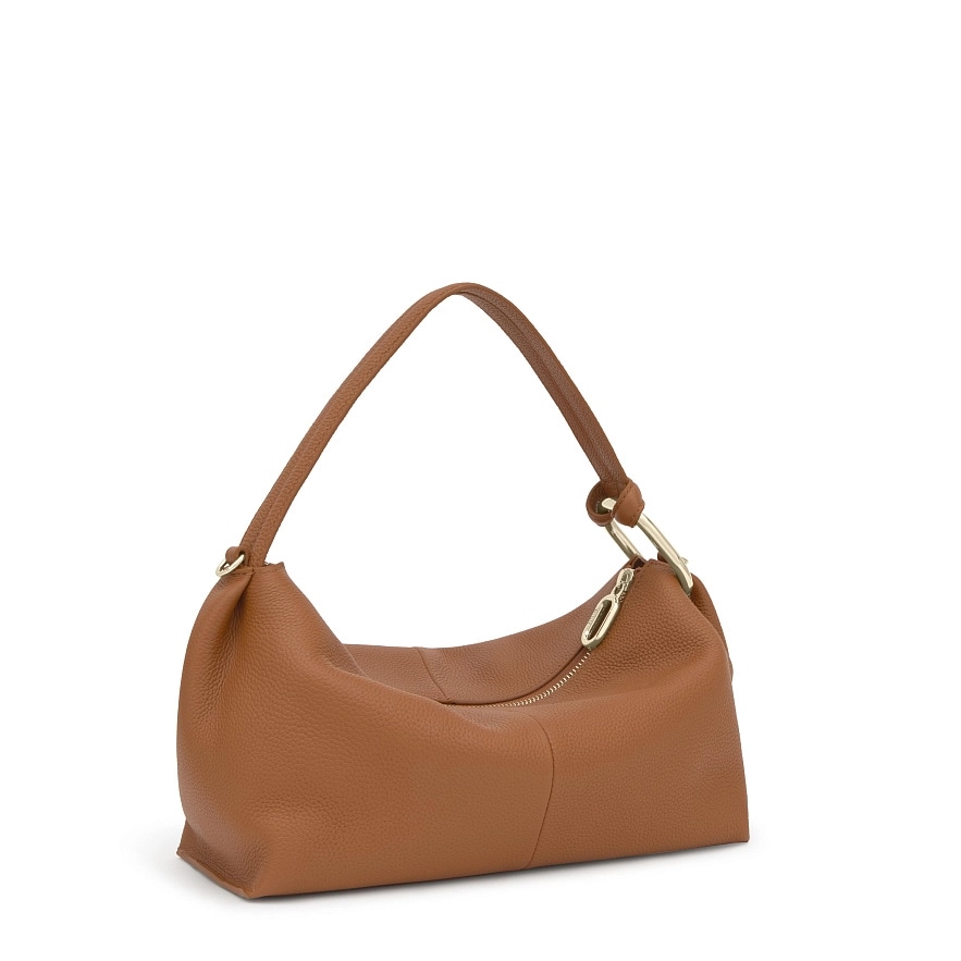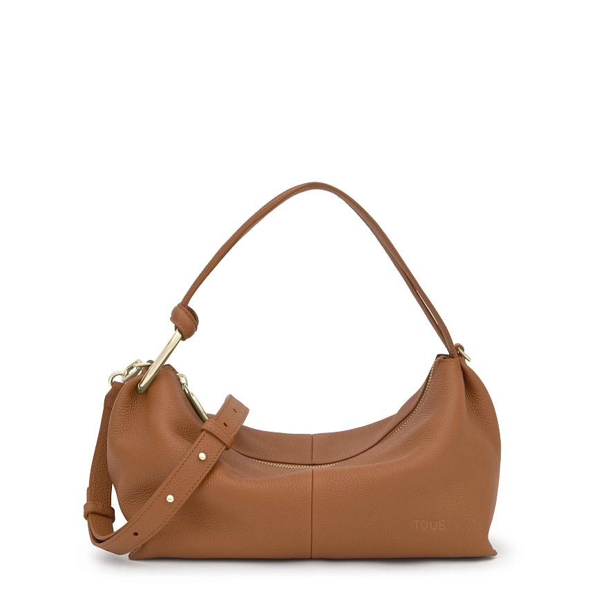 Сумка TOUS Hold зі шкіри з сертифікатом LWG кольору кемел. Застібка-блискавка. Внутрішня кишеня на блискавці. Фіксований ремінь через плече та регульований ремінь через плече. Розміри (висота x ширина x глибина): 18 x 33 x 11 см.