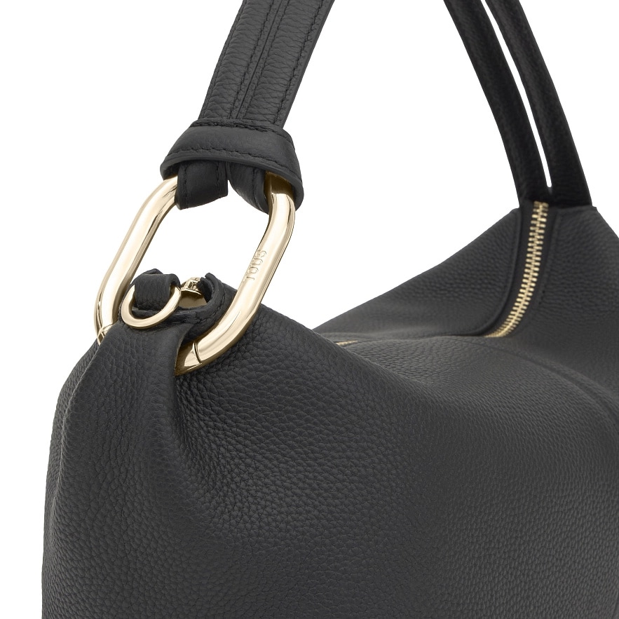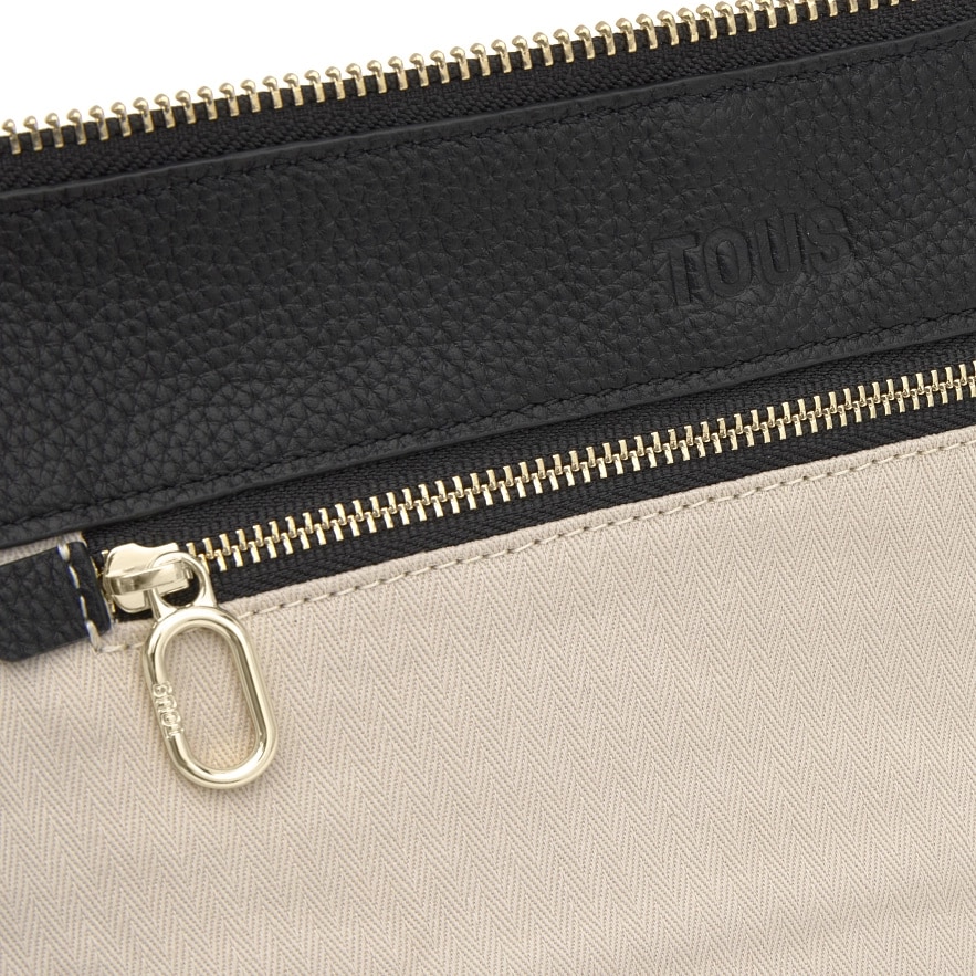 Сумка TOUS Hold зі шкіри з сертифікатом LWG чорного кольору. Застібка-блискавка. Внутрішня кишеня на блискавці. Фіксований ремінь через плече і регульований ремінь через плече. Розміри (висота x ширина x глибина): 18 x 33 x 11 см.
