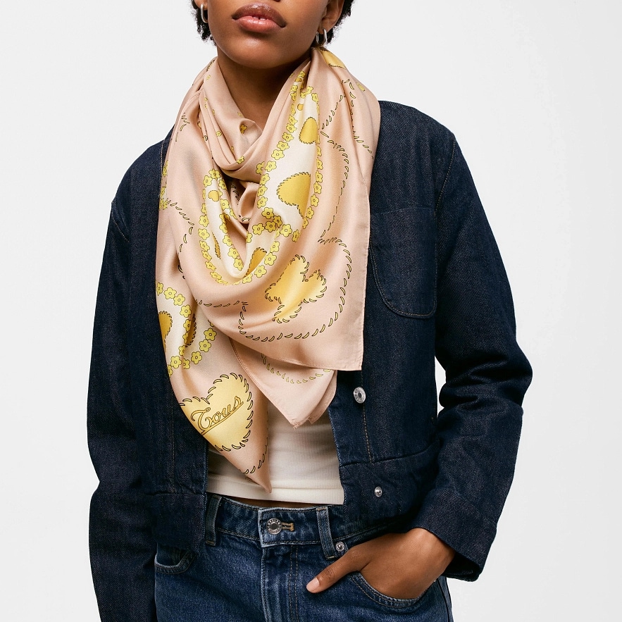 Хустка TOUS Motifs Paisley квадратний, пісочного кольору . Розміри: 120 x 120 см. Склад: 55% шовк, 45% бавовна.