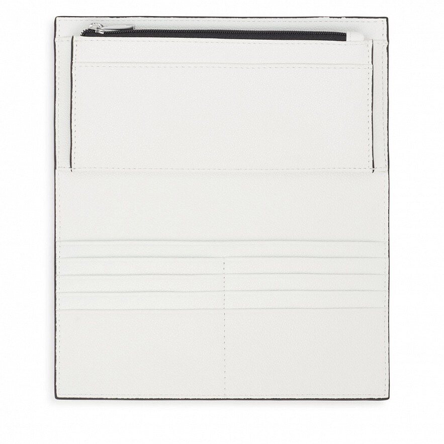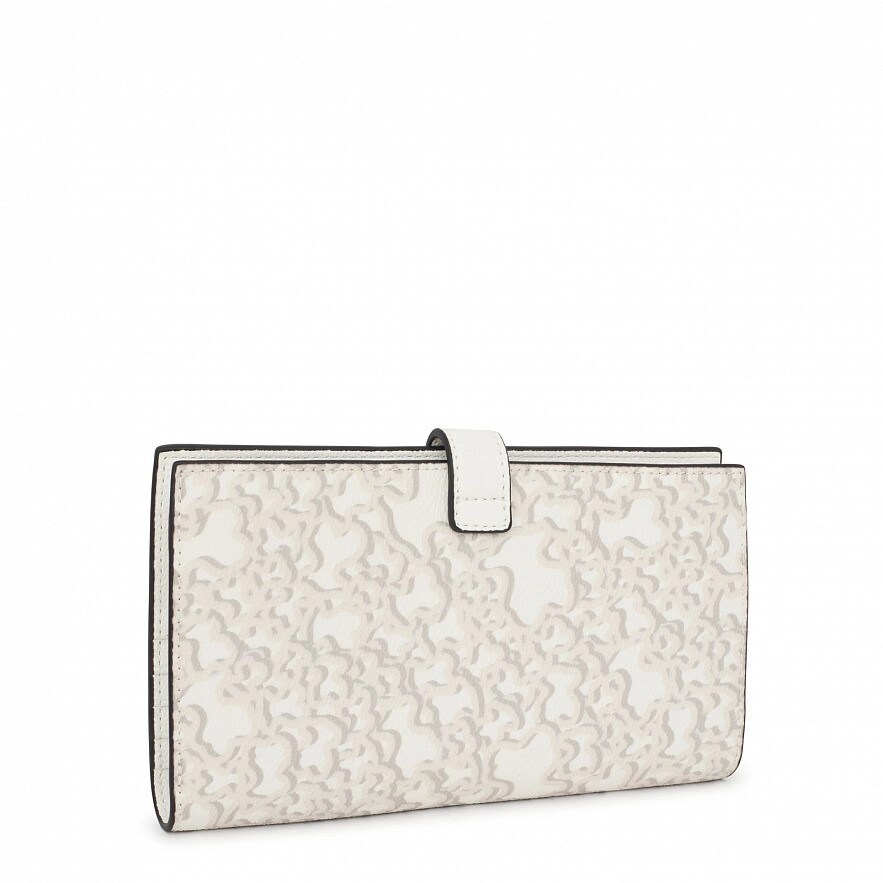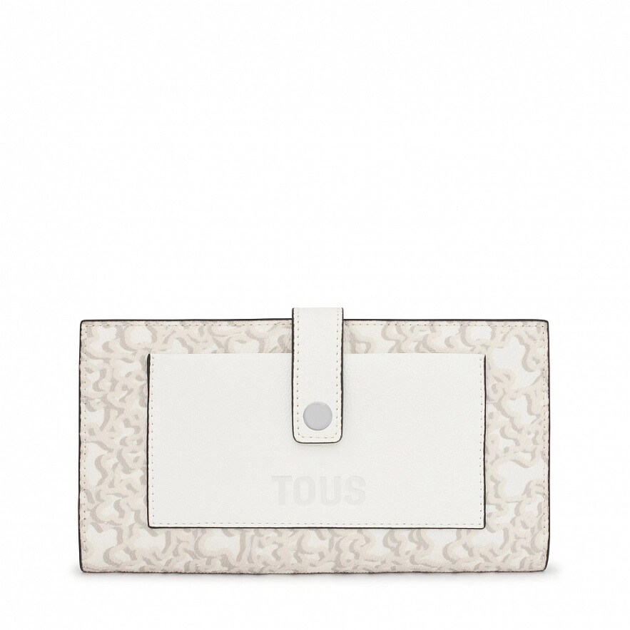 Гаманець TOUS Kaos Mini Evolution сірого кольору зі штучного матеріалу. Має оздоблення з синтетичної шкіри. Застібка на кнопки та відкрита передня кишеня. Всередині три відкритих відділення для купюр, одна кишеня на блискавці для монет і вісім слотів для карток. Розміри (висота х ширина х глибина): 11 х 19,5 х 2 см.
