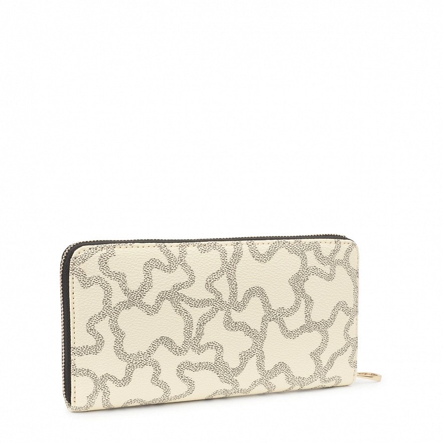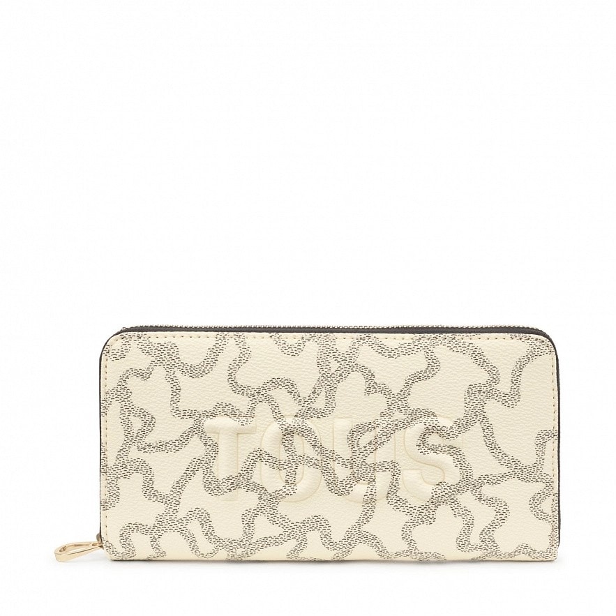 Гаманець TOUS Kaos Icon зі штучної шкіри з бежево-сірим принтом Kaos. Застібка-блискавка. Всередині має кишеню на блискавці для монет, вісім слотів для карток і чотири відкритих відділення для купюр. Розміри (висота х ширина х глибина): 10,5 х 19,5 х 2,8 см.