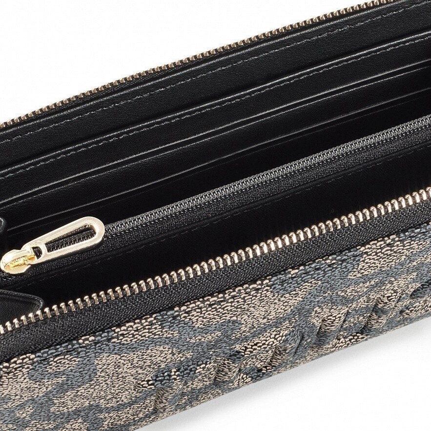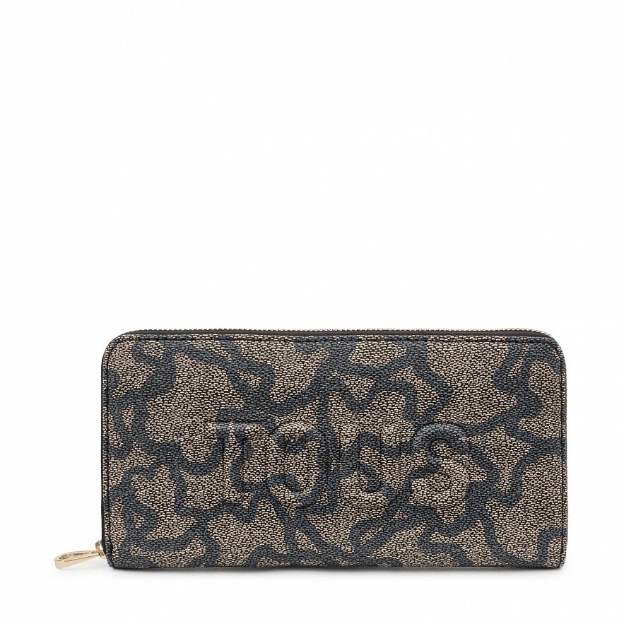 Гаманець TOUS Kaos Icon зі штучної шкіри чорно-коричневим принтом Kaos. Застібка-блискавка. Всередині має кишеню на блискавці для монет, вісім слотів для карток і чотири відкритих відділення для купюр. Розміри (висота х ширина х глибина): 10,5 х 19,5 х 2,8 см.