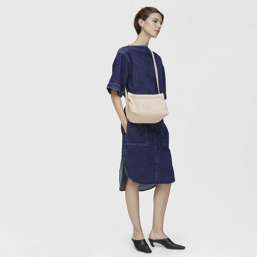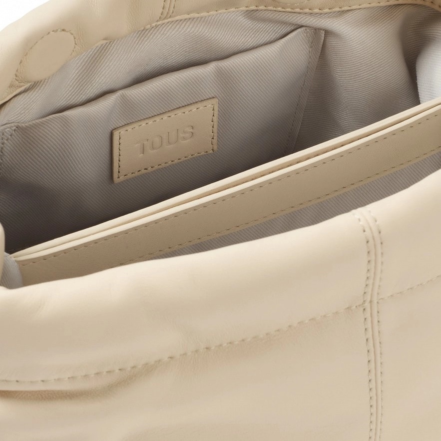 Сумка через плече TOUS Dolsa бежевого кольору з овечої шкіри зі сертифікатом LWG . Застібка на два магніти. Всередині є центральна кишеня, яка розділяє два основних відділення, одне з яких має відкриту кишеню. Регульований та з`ємний ремінець через плече. Розміри (висота х ширина х глибина): 19 х 28 х 17 см.