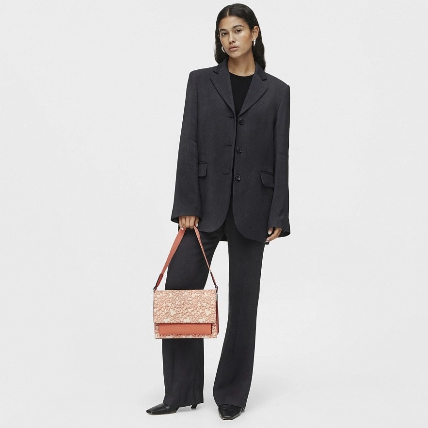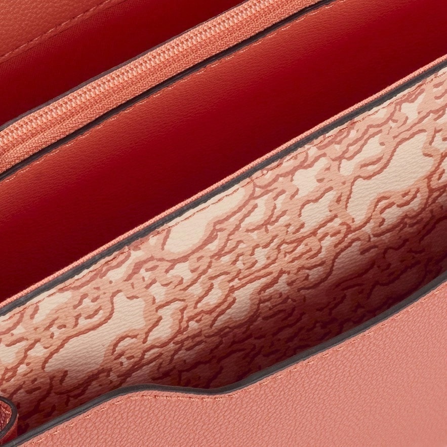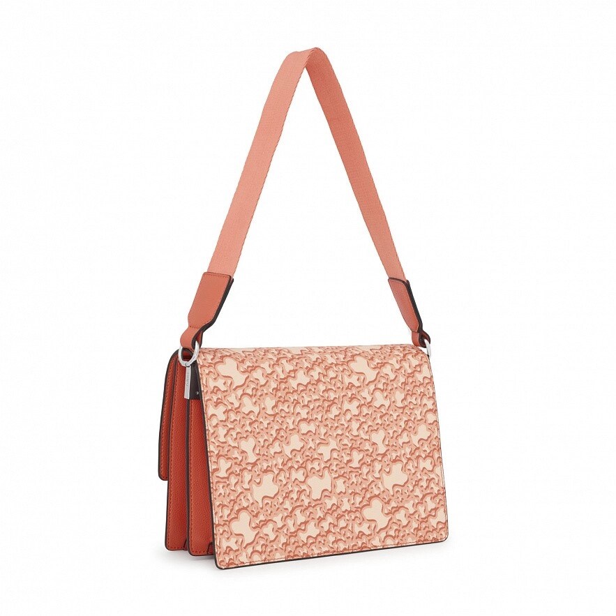 Сумка Kaos Mini Evolution Audree середнього розміру зі штучної шкіри з принтом Kaos помаранчевого кольору. Дві магнітні кнопки. Відкрита зовнішня кишеня. Усередині два відділення, розділених кишенею на блискавці. Фіксований плечовий ремінь і регульований та з`ємний ремінь через плече. Розміри (висота х ширина х глибина): 20 х 25 х 12 см.