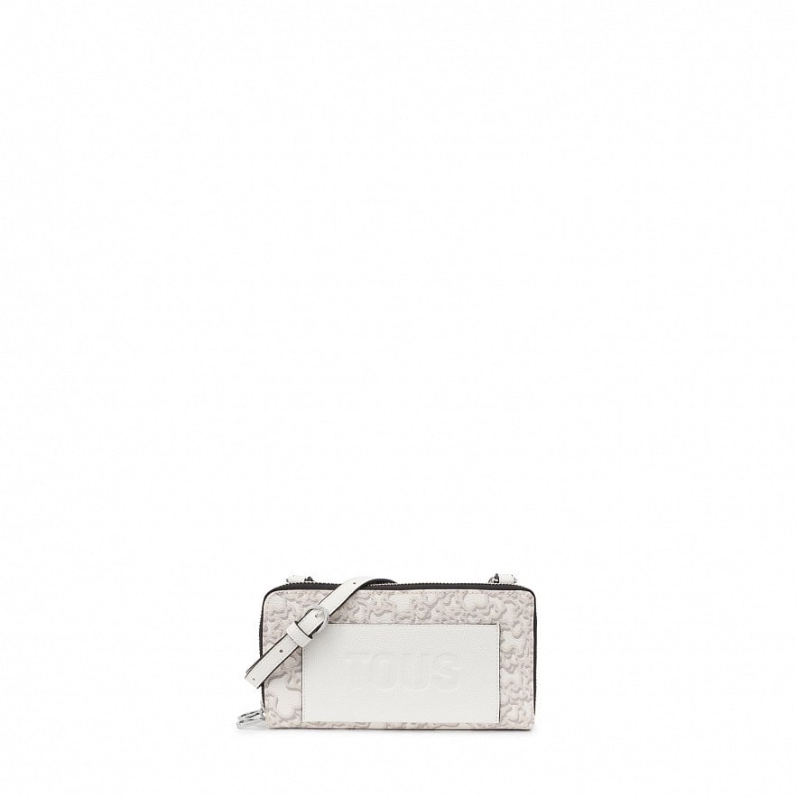 Гаманець Kaos Mini Evolution зі штучної шкіри з принтом Kaos світло-сірого кольору. Має два основних відділення, які закриваються на блискавку. Одне відділення достатньо велике, може вмістити мобільний телефон. Інше - має вісім слотів для карток, місце для монет і для купюр. Регульований ремінь через плече. Розміри (висота х ширина х глибина): 10 х 19,5 х 4 см.