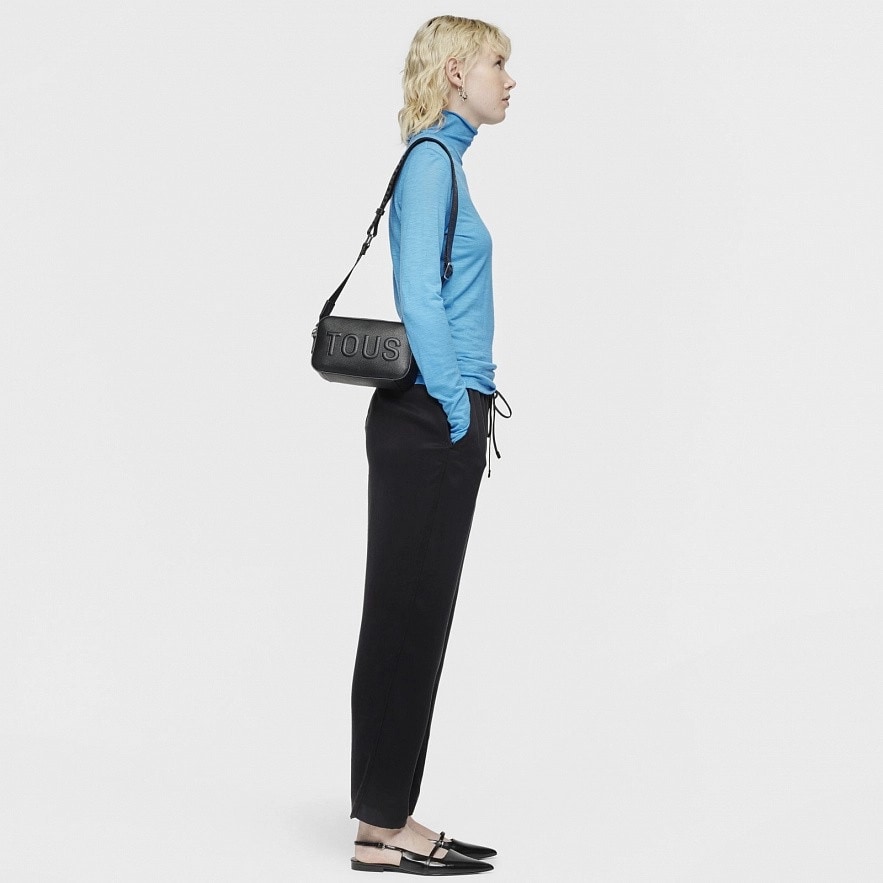 Сумка через плече TOUS La Rue New з чорної штучної шкіри. Сумка з двома відділеннями на блискавці, одне з них з відкритою внутрішньою кишенею. Регульований плечовий ремінь. Розміри (висота х ширина х глибина): 13 х 20,5 х 7 см.