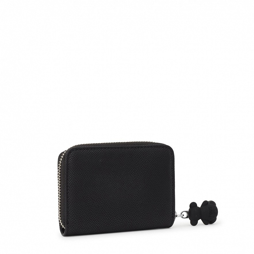 Гаманець TOUS La Rue New з чорної штучної шкіри. Має три відкриті відділення для монет і два слоти для карток. Застібка-блискавка. Розміри (висота х ширина х глибина): 8 х 11 х 3 см.