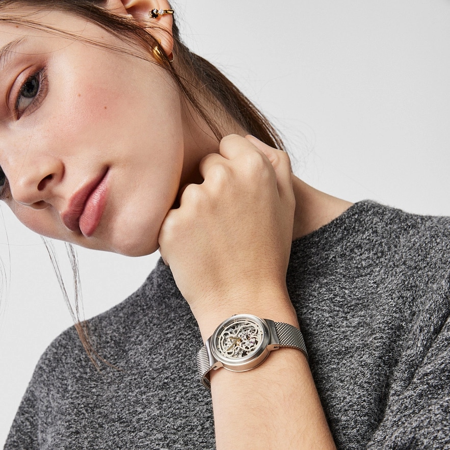 Годинник TOUS з круглим циферблатом з нержавіючої сталі сірого кольору з автоматичним механізмом, з сапфіровим склом, ремінець з нержавіючої сталі сріблястого кольору,водонепроникність до 5 АТМ.