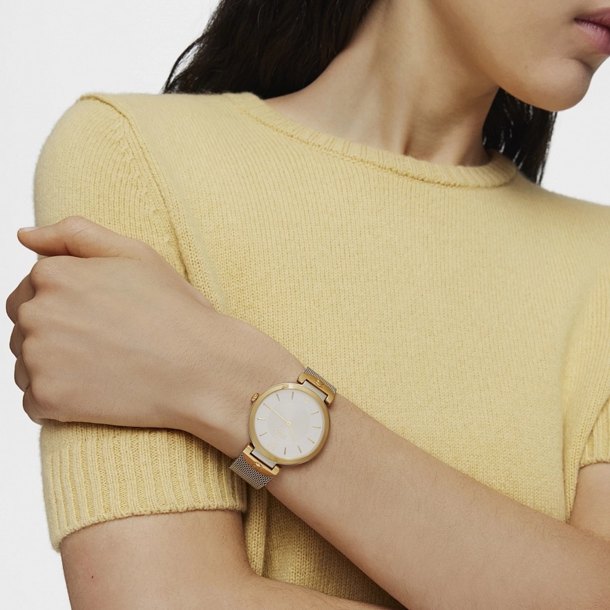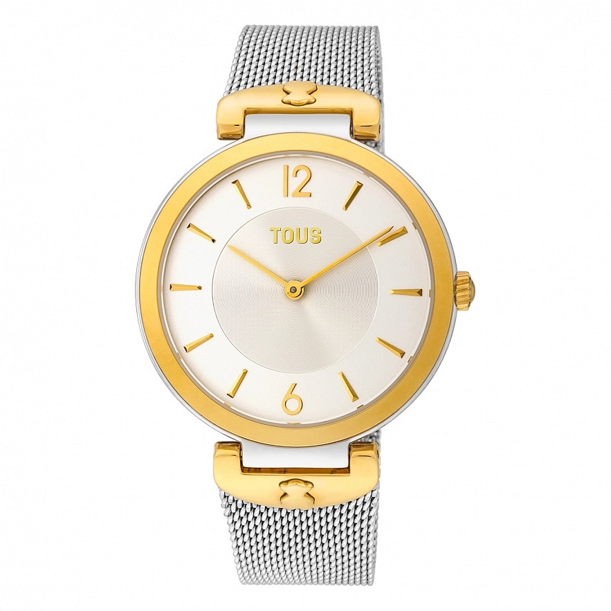 Годинник TOUS S-Mesh з нержавіючої сталі IP-золотистого кольору, водонепроникний до 5 АТМ, мінеральне скло, функції: години і хвилини, кварцевий механізм.