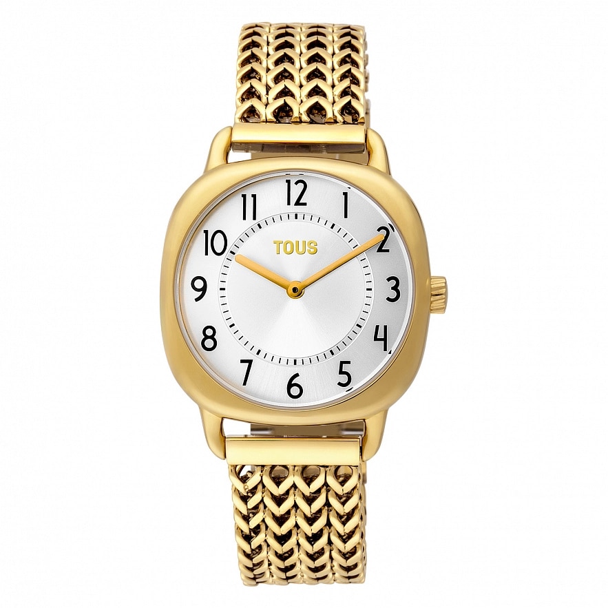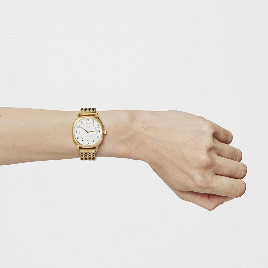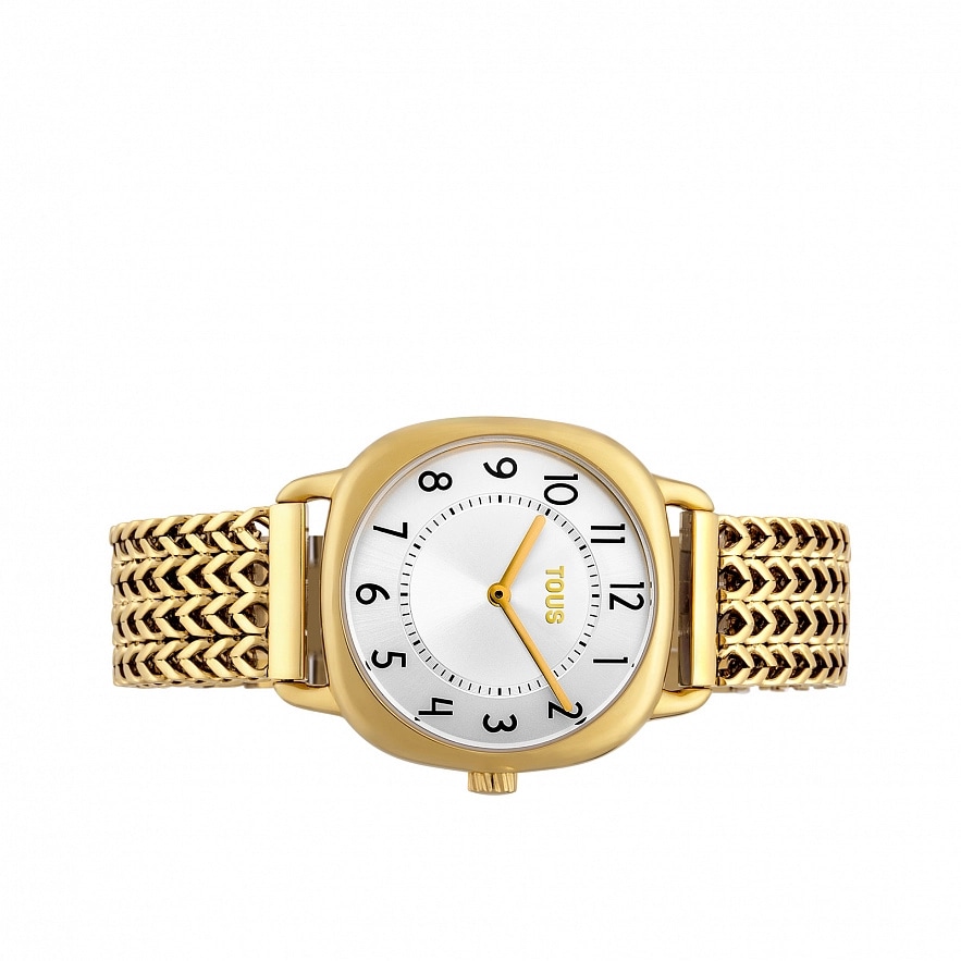 Годинник TOUS Osier з нержавіючої сталі IP-золотистого кольору, водонепроникний до 3 АТМ, мінеральне скло, функції: години і хвилини, аналоговий кварцевий механізм.