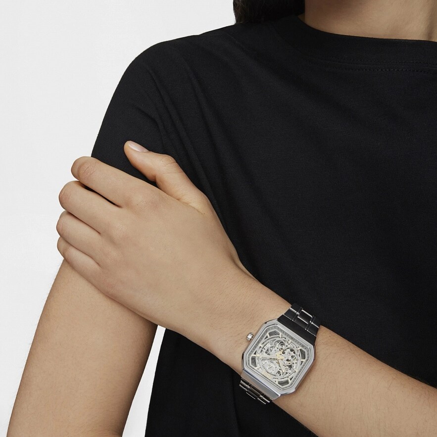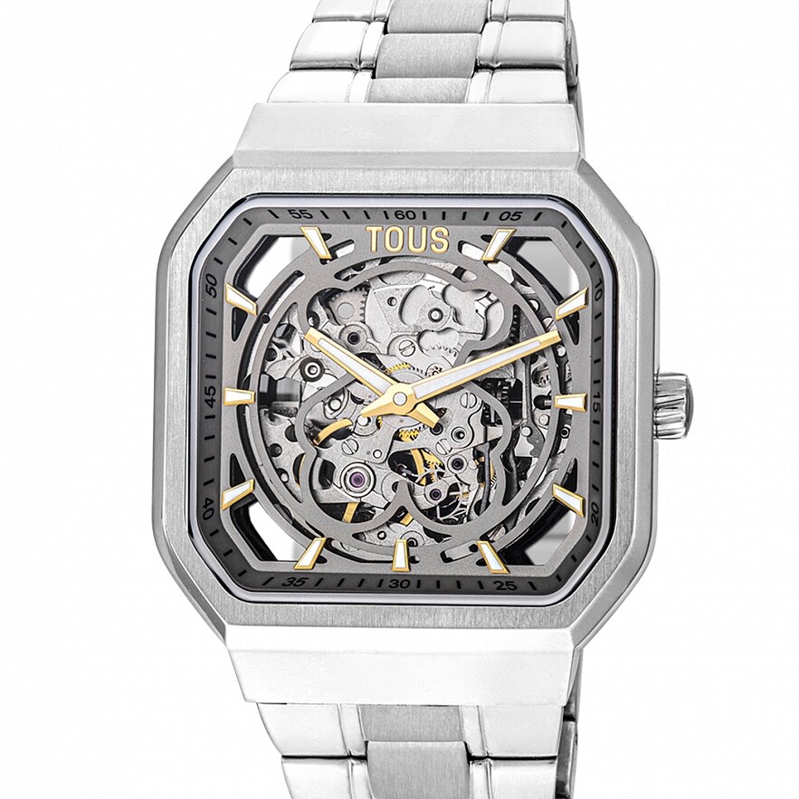 Годинник TOUS D-Bear зі сталевим ремінцем і відкритими механізмами з IP-сталі золотого кольору з силуетом ведмедика на передній панелі. Функції: години та хвилини. Водонепроникність до 3 ATM. Японський механізм.