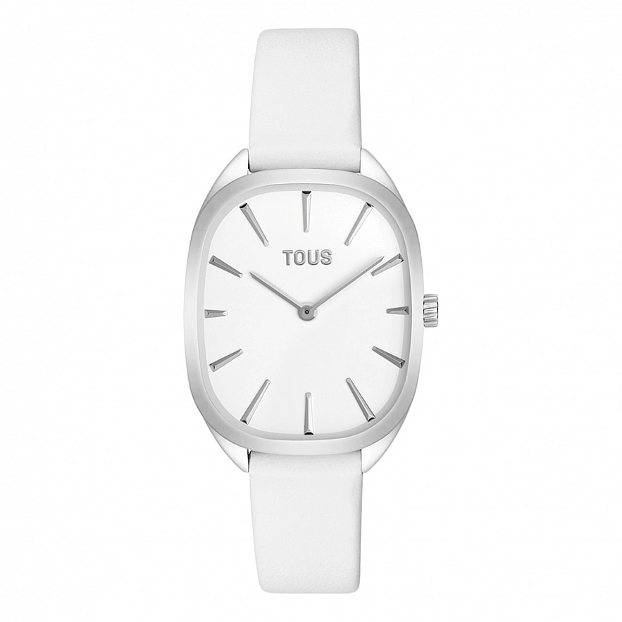 Годинник TOUS Heritage з колекції 1950 з нержавіючої сталі з білим шкіряним ремінцем, мінеральне скло. Водонепроникність Функції: години та хвилини.