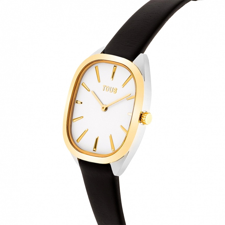 Годинник TOUS Heritage з колекції 1950 з IP-золотим корпусом з нержавіючої стіалі з чорним шкіряним ремінцем, мінеральне скло. Водонепроникність до 3 атм.