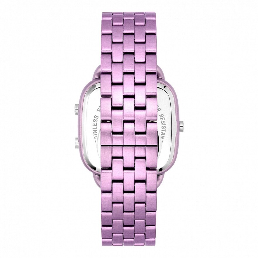 Годинник TOUS D-Logo зі сталевим ремінцем лілового кольору. Функції: година, хвилини, секунди, день, місяць, день тижня, 1/100 сек. секундомір і будильник. Розміри: 36 мм. Водонепроникний при 3ATM. Квадратний мінеральний кристал.