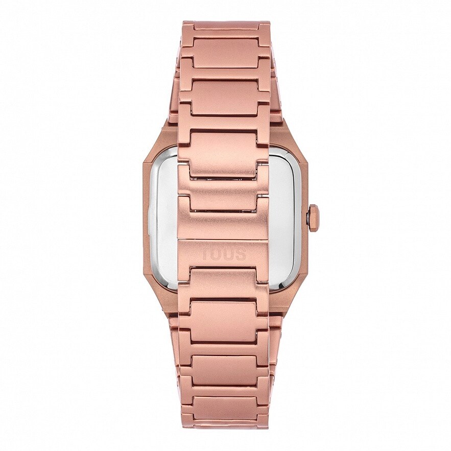 Годинник TOUS Karat Squared зі сталі з покриттям рожевого кольору з алюмінієвим ремінцем. Розміри: 32,2 мм x 39 мм. Металевий циферблат із гранованими кристальними цифрами. Функції: години та хвилини. Водонепроникний при 3АТМ. Акумулятор: 1,55 В, оксид срібла SR626SW / 0,30грам. Японський кварцевий механізм.