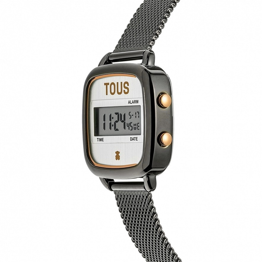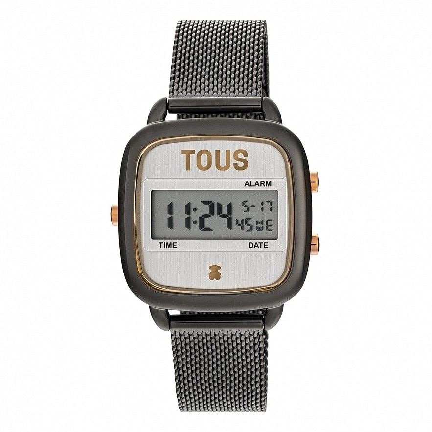 Годинник TOUS D-Logo, браслет із сірої сталі IP. Розмір: 30,8 мм. Функції: години, хвилини, секунди, день, місяць, день тижня, 1/100 сек. секундомір і будильник. Водонепроникний при 3АТМ. Акумулятор: 3В літієвий CR2016 / 1,69грам (літій 0,025грам).