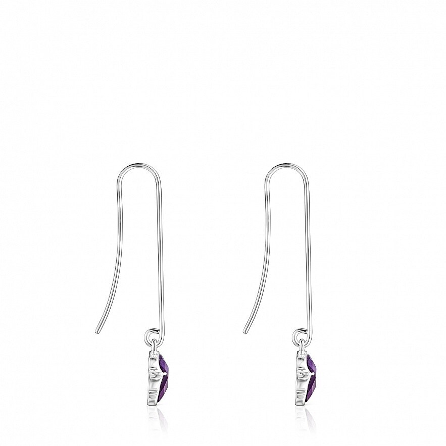 Довгі сережки TOUS Icon Color зі срібла 925 проби з аметистом. Розмір ведмедика: 1.1 см. Довжина сережок - 4 см. Застібка гачком.