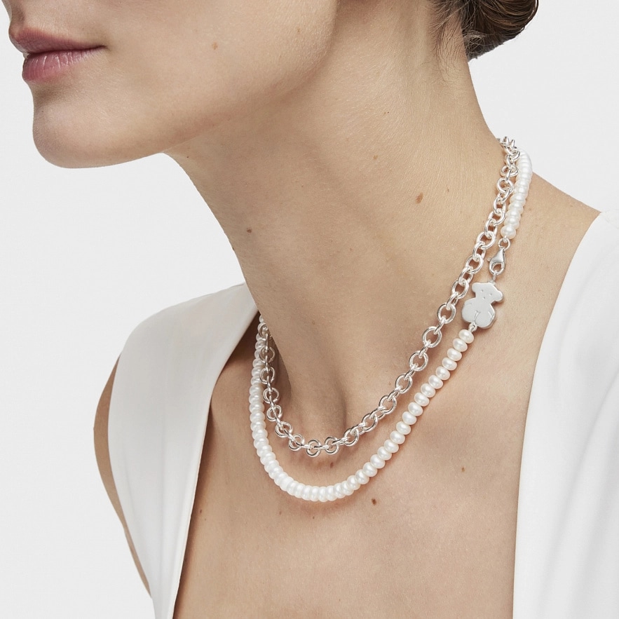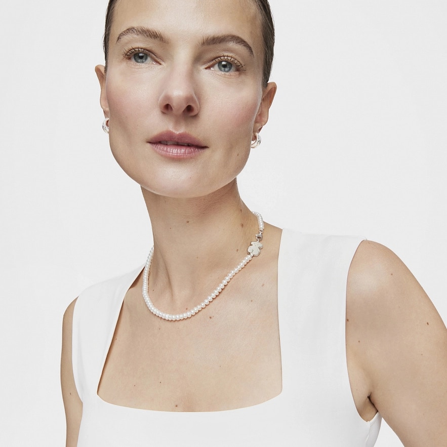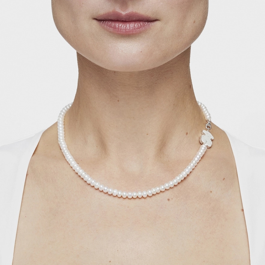 Намисто TOUS Sweet Dolls зі срібла 925 проби та з культивованими прісноводними перлами і ведмедиком. Довжина намиста: 44,5 см. Техніка виготовлення: Гальванопластика без серцевини.