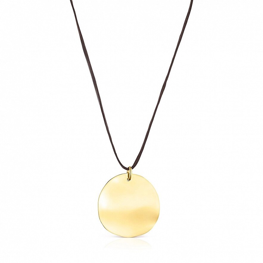 Намисто TOUS Nenufar у вигляді пелюстки зі срібла 925 проби з покриттям Vermeil з коричневим шкіряним шнуром. Розмір пелюстки: 5,2 см. Довжина намиста: 95 см. Vermeil : срібло з покриттям золота 18 карат.