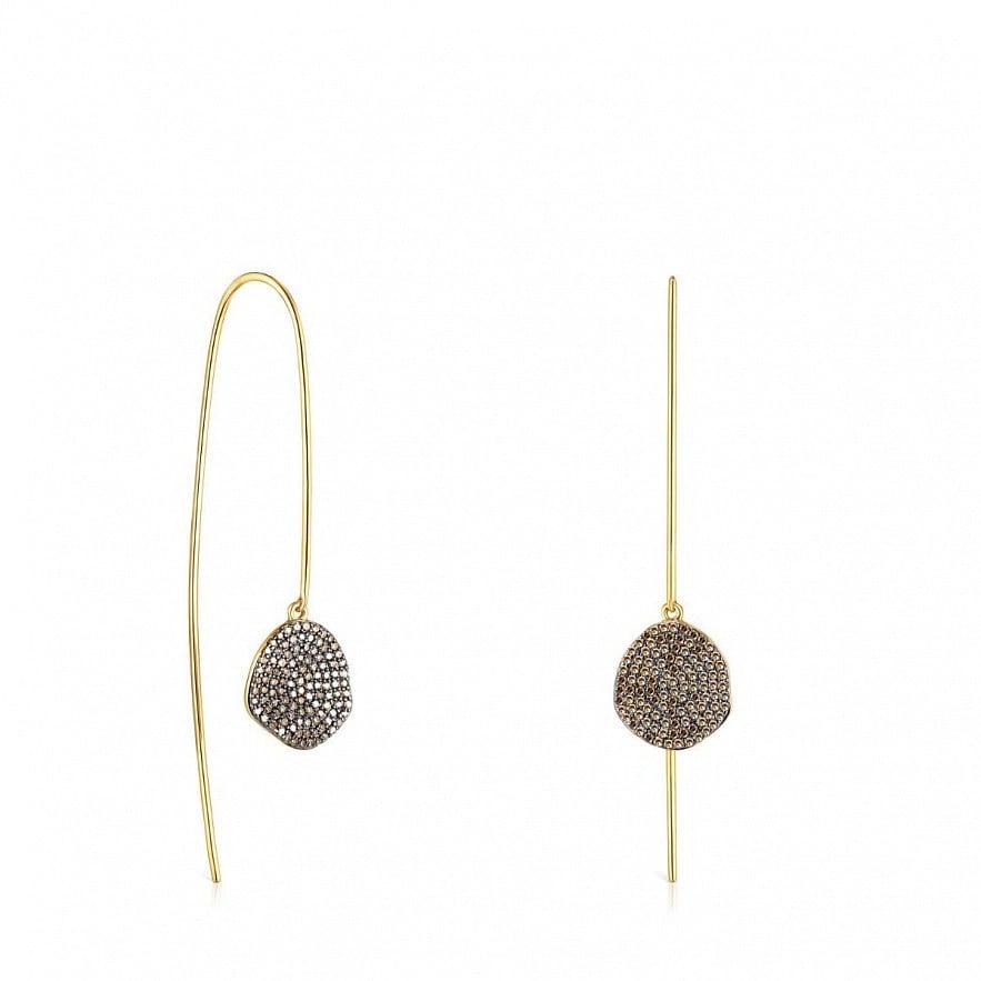 Сережки TOUS Nenufar зі срібла 925 проби з покриттям Vermeil з діамантами одинарної огранки світло-коричневого кольору розміром 1,08 карата, L / I. Розмір пелюстки: 1,4 см. Застібка на довгий гачок. Технологія виробництва: лиття. Vermeil : срібло з покриттям золота 18 карат.