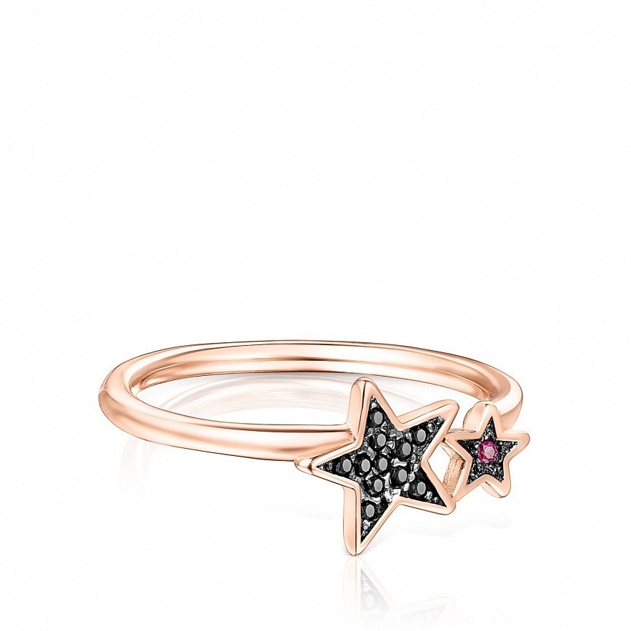 Каблучка TOUS Teddy Bear Stars зі срібла 925 проби у покритті Vermeil з зіркою зі шпінелі розміром 0,8 см та рубіновою зіркою розміром 0,4 см. Vermeil : срібло з покриттям золота 18 карат.