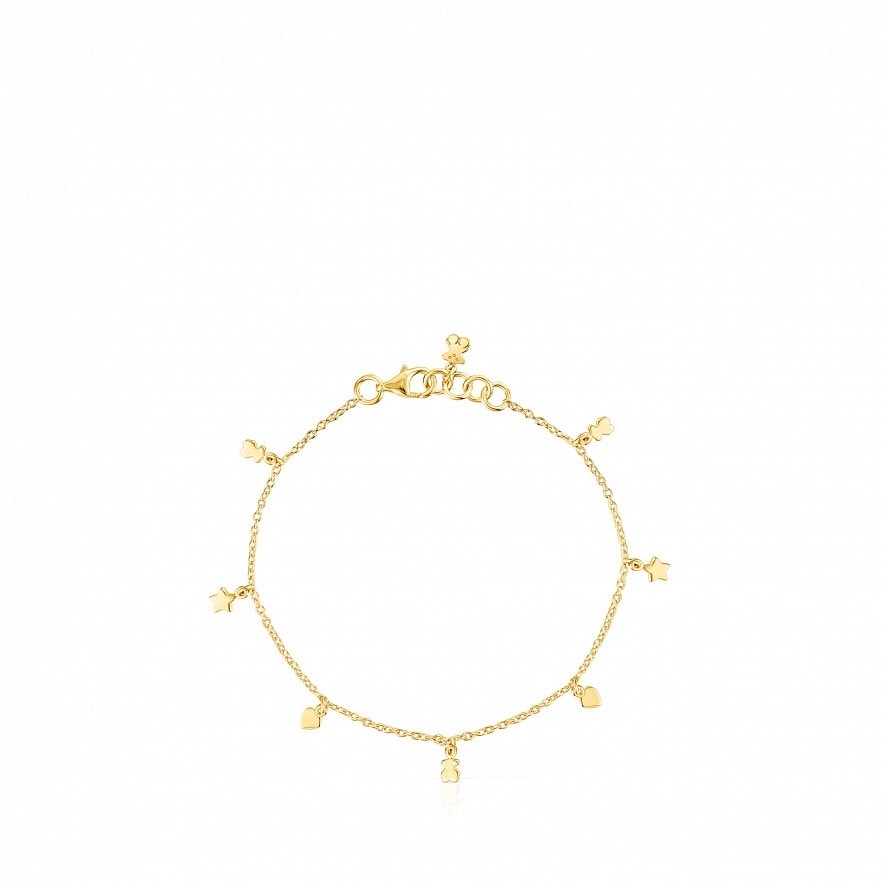 Браслет TOUS Cool Joy із срібла 925 проби з покриттям Vermeil . Підвіски на браслеті - символи: зірка, серце, ведмідь розміром 0.35 см. Довжина браслета: 17,5 см.Vermeil : срібло з покриттям золота 18 карат.