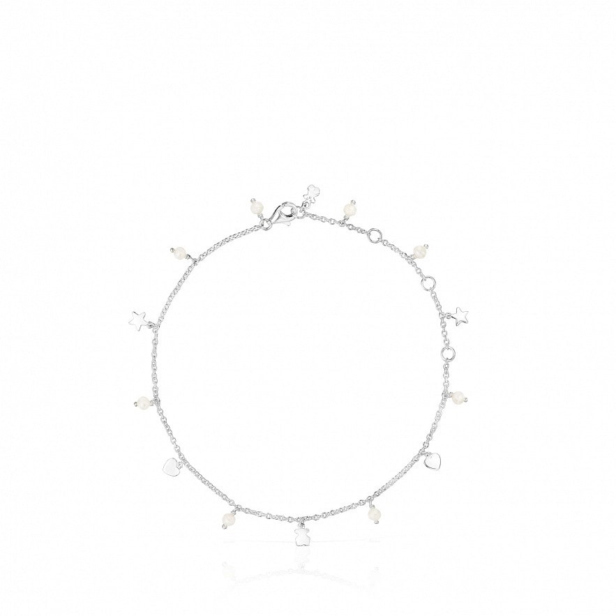 Браслет на ногу TOUS Cool Joy зі срібла 925 проби з різними мотивами розміром 3.5 мм (зірка, серце, ведмідь) та перлинами ø3 мм. Довжина регулюється: 20-22-24-26 см.