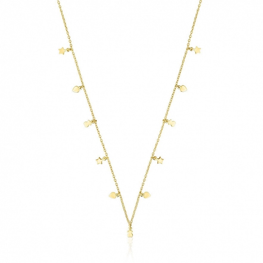 Намисто TOUS Cool Joy із срібла 925 проби з покриттям Vermeil . Підвіски на ланцюгу - символи: зірка, серце, ведмідь розміром 0.35 см. Довжина регулюється: 43 см, 40 см.Vermeil : срібло з покриттям золота 18 карат.