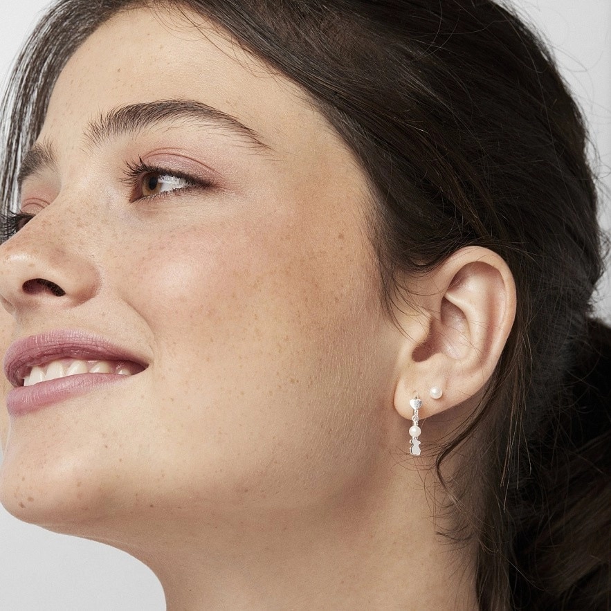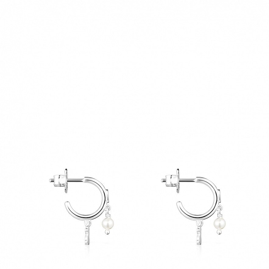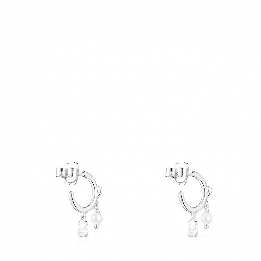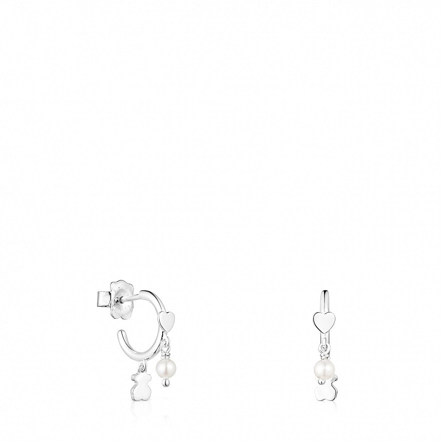 Сережки TOUS Cool Joy зі срібла 925 проби з ведмежам і серцем 3,5-5 мм і з перлами 3 мм. Кільце: 12,5 мм. З фіксованим штифтом.